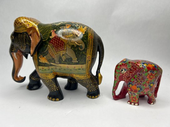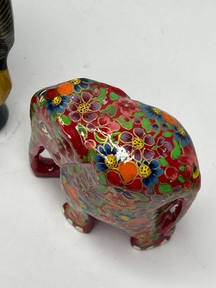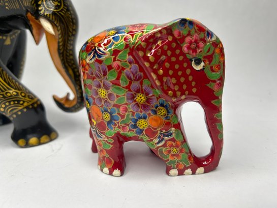 Pair Of Elegant, Colorful Elephant Sculptures, Largest 6 Inches Tall