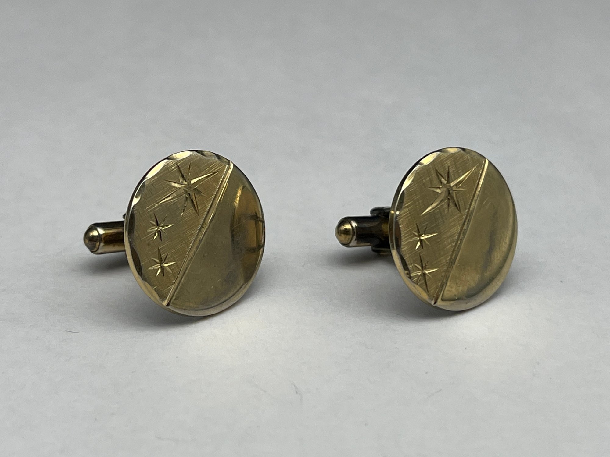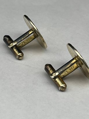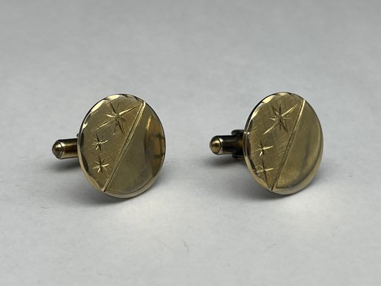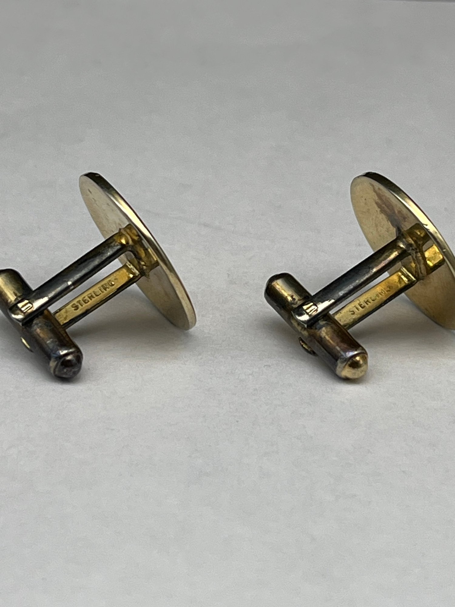 Pair Of Gold Washed SterlingSilver Cufflinks, Etched Design, Some Wear From Age And Use, Marked Sterling, 3/4"