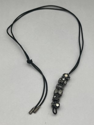 PANDORA Black Leather Cord Sliding Knot Necklace With Collection Of Sterling Silver & Crystal Beads, ALE 925