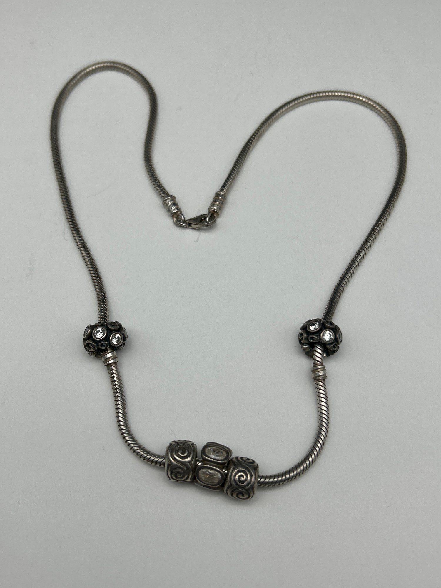 PANDORA Snake Chain 19" Necklace With Slider Charms And Threaded Bead Spacers, Marked ALE 925