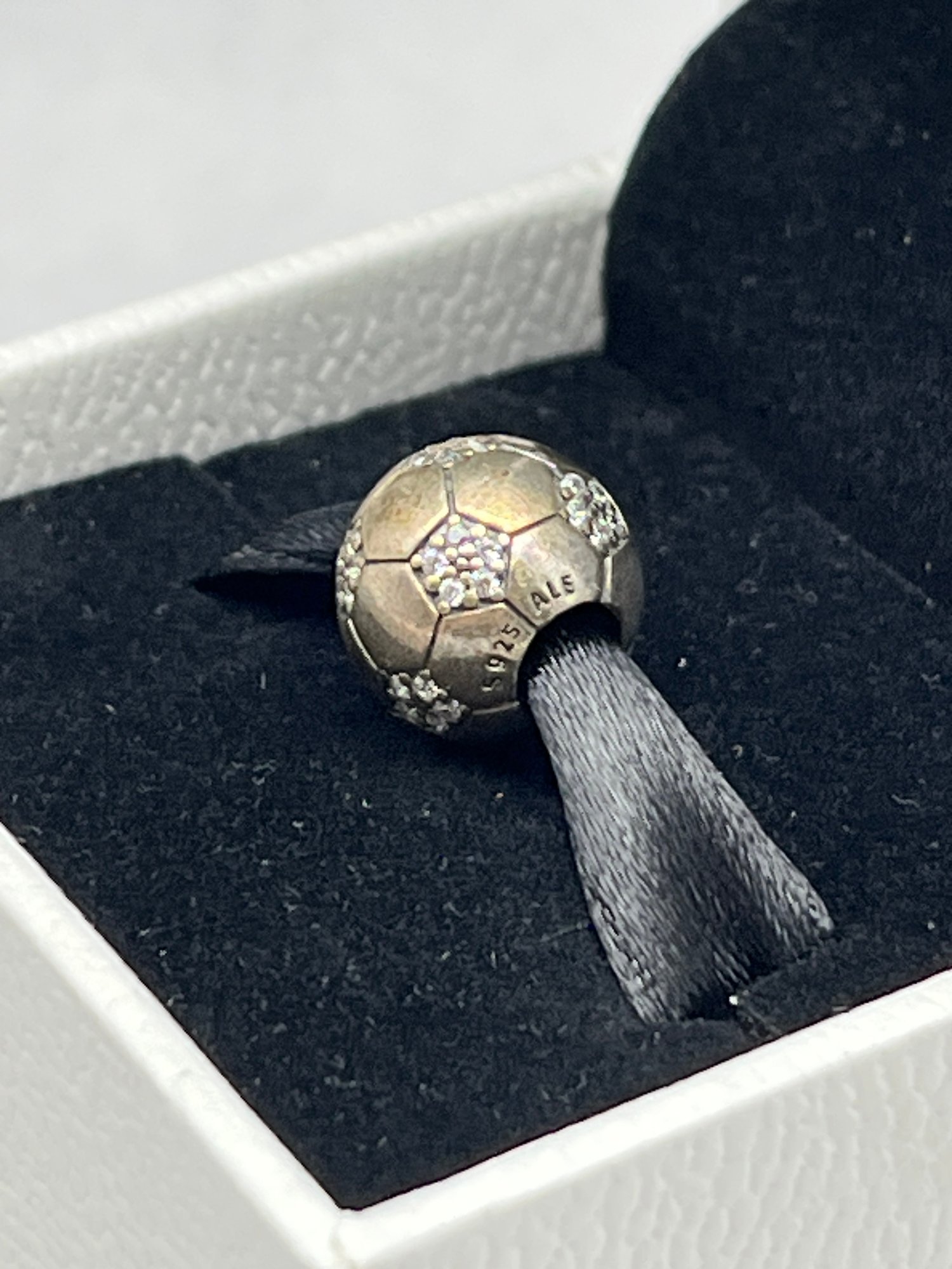 PANDORA Sparkling Soccer Charm, Sterling Silver And CZ, Marked ALE 925, With Box
