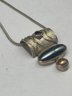 Artisan Made Sterling Silver 1.25" Pendant W/Magnetite & Stone Accent, On Sterling 16" Chain, Both Marked 925