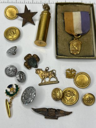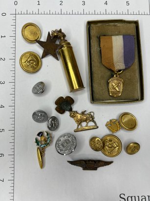 Assorted Medals, Military, Scout Buttons, Fraternal Collectibles