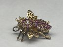 Pave Set Purple And Clear Stone Gold Toned Bee Or Fly Pin / Pendant, 1"