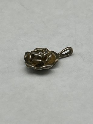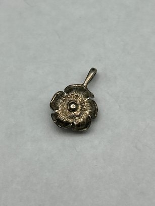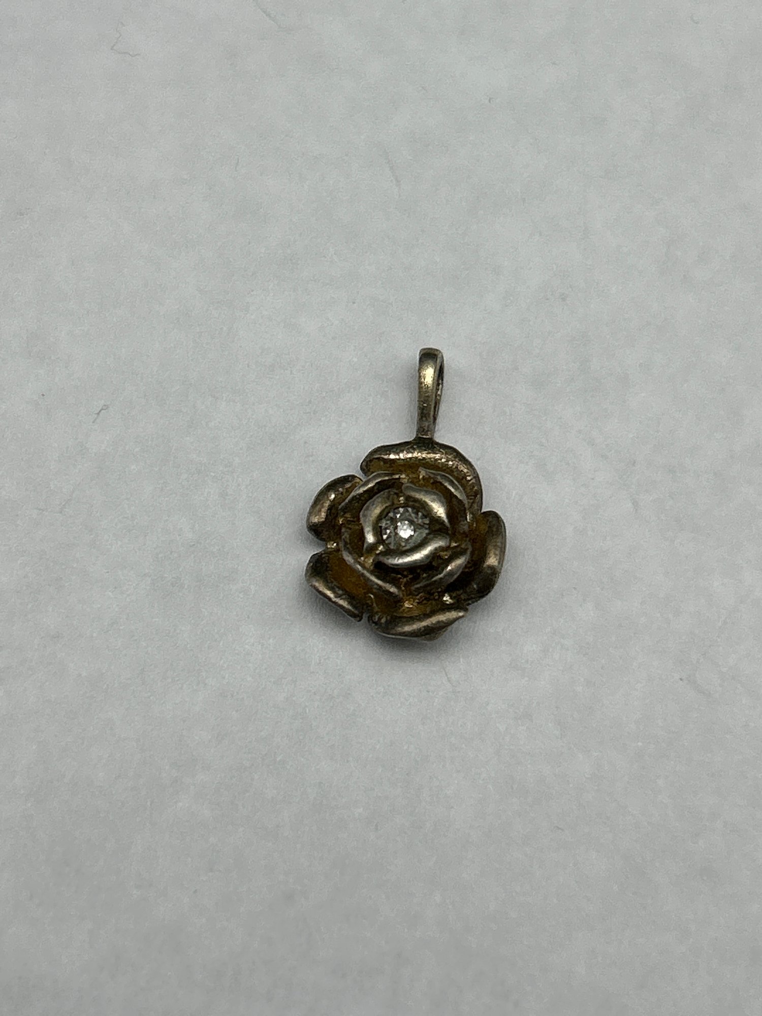 AVON Vintage Sterling Silver Rose Pendant With Natural Round-Cut Diamond Center, 1/2-inch