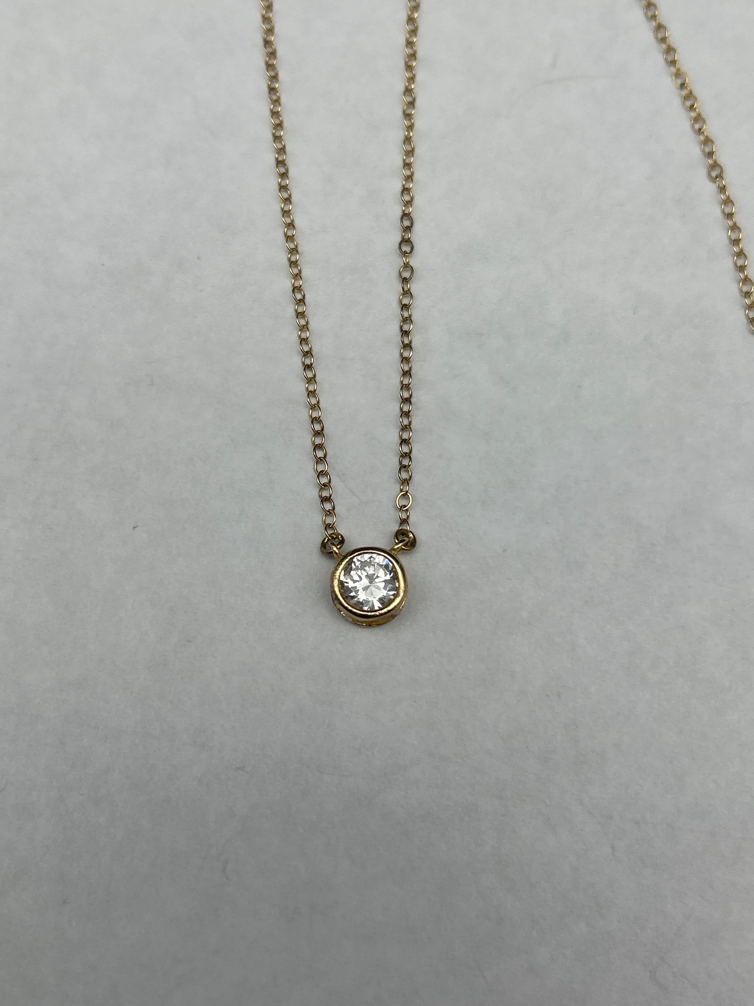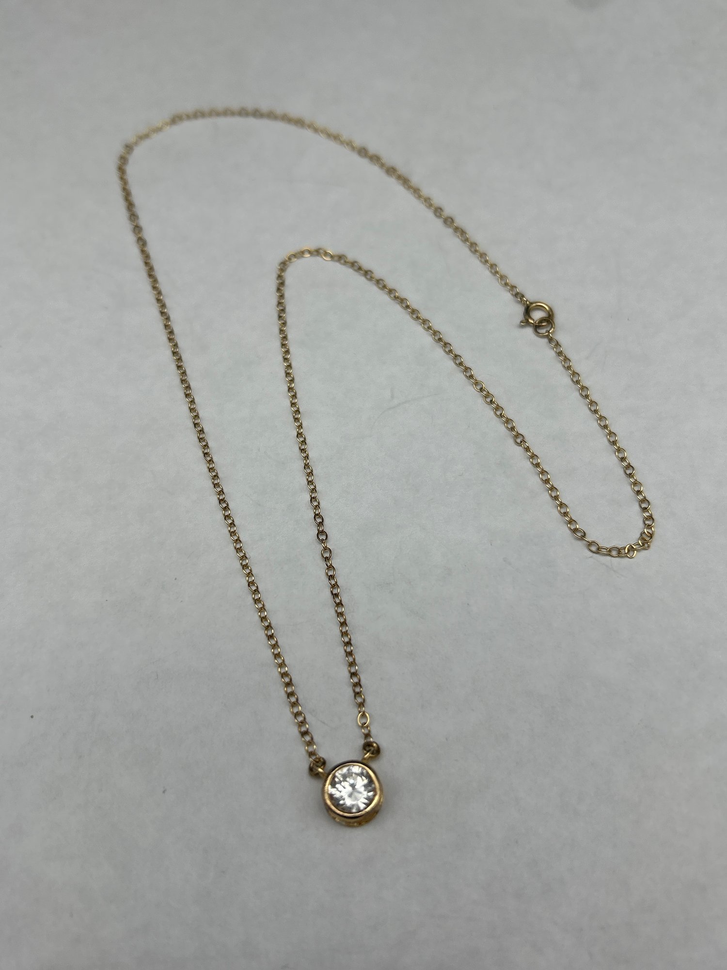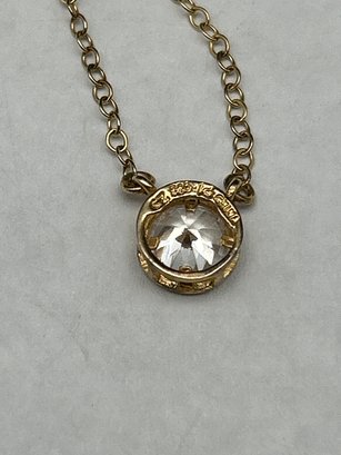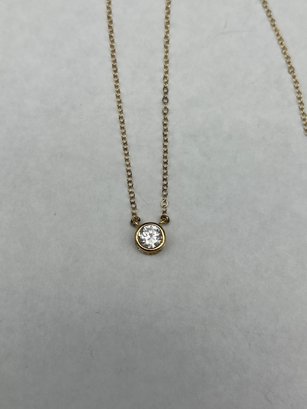 Beautiful Solitaire CZ Pendant In Gold Toned 925 Silver Setting Fixed On 18" Necklace