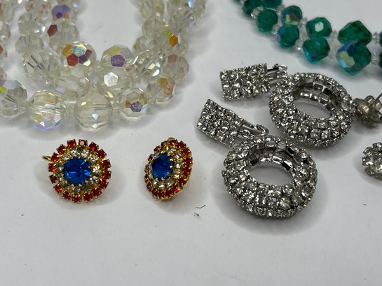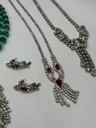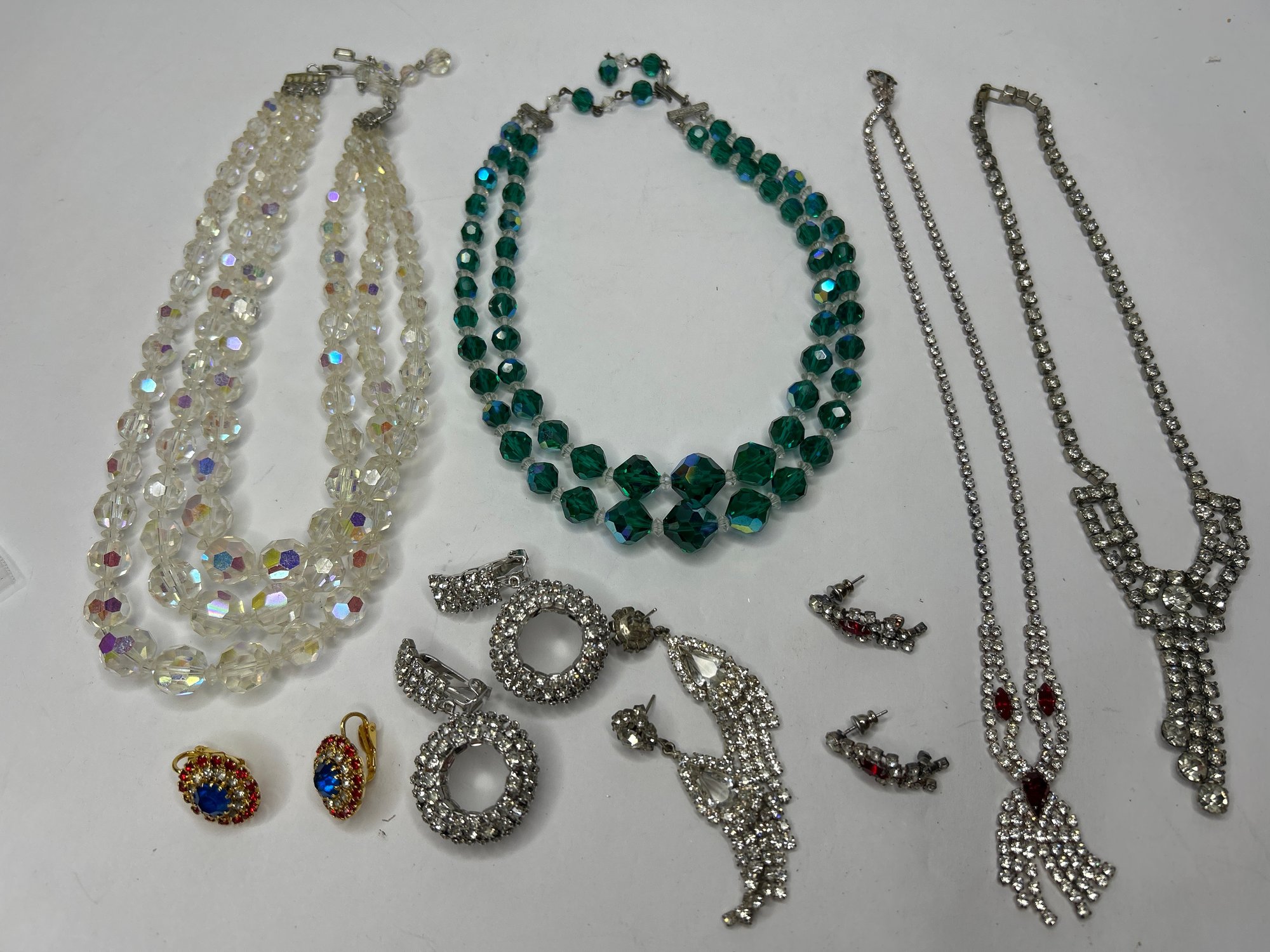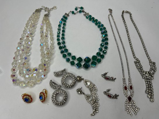 Beautiful Vintage Rhinestone Jewelry, Earrings And Necklaces, Wearable
