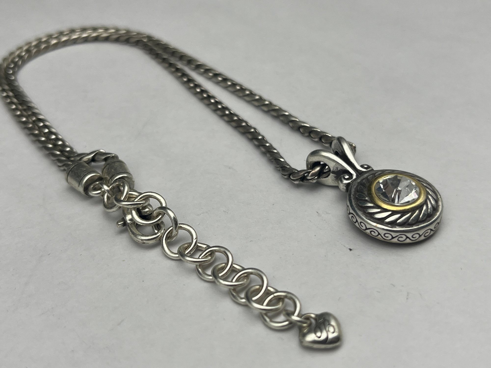 BRIGHTON Silver Plated Two-Toned Reversible Necklace, Crystal Round Stone, Adjustable Necklace 16-18"