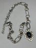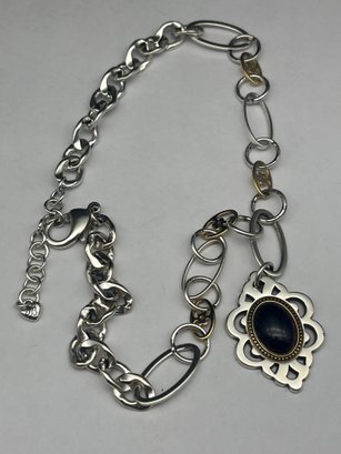 BRIGHTON Two Toned Necklace With Dark Oval Cabochon Stone Pendant, Adjustable Station Necklace, 18"-20"