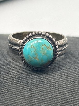 Carolyn Pollack Sterling Silver Dome Cabochon Turquoise Ring, Hallmark, Stamped 925, Size 7