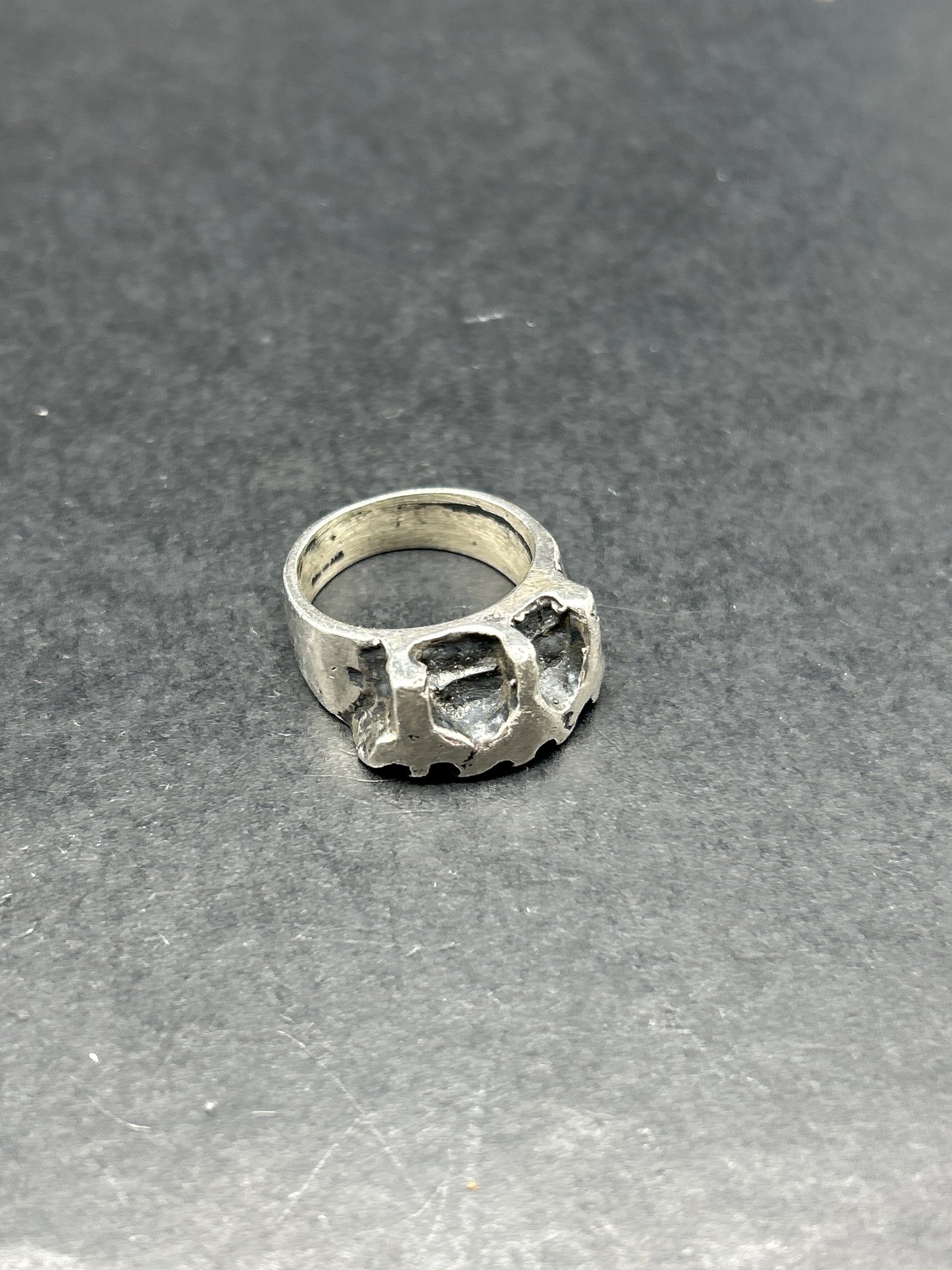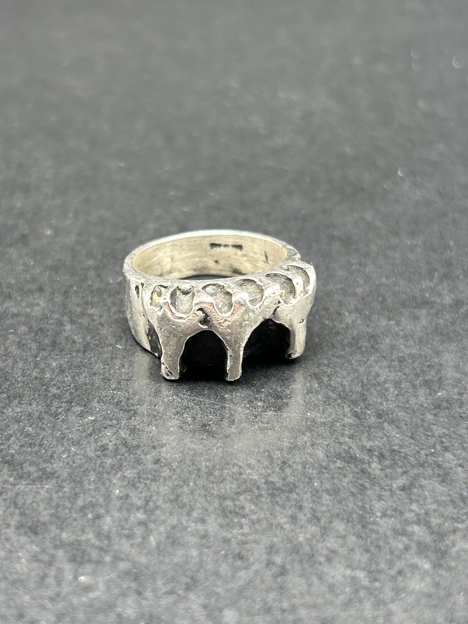 Castle Turret Design Chunky Sterling Silver Ring, Size 8.5, Marked Sterling