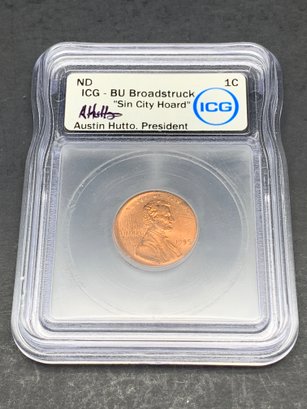 ICG -BU Broadstruck 1c, 1995 Penny, Sin City Hoard, SIgned By ICG President Austin Hutto