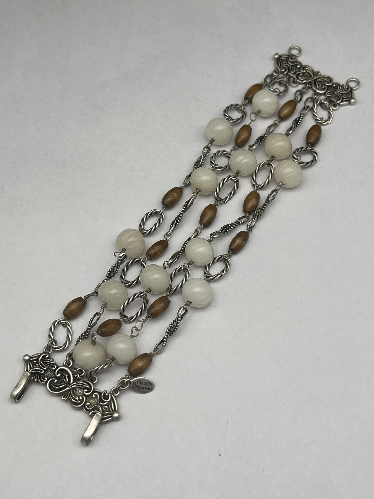 CLAUDIA AGUDELO Carved Glass And Wood Bead 5 Strand Bracelet, Double Hook Closure, 7.5"