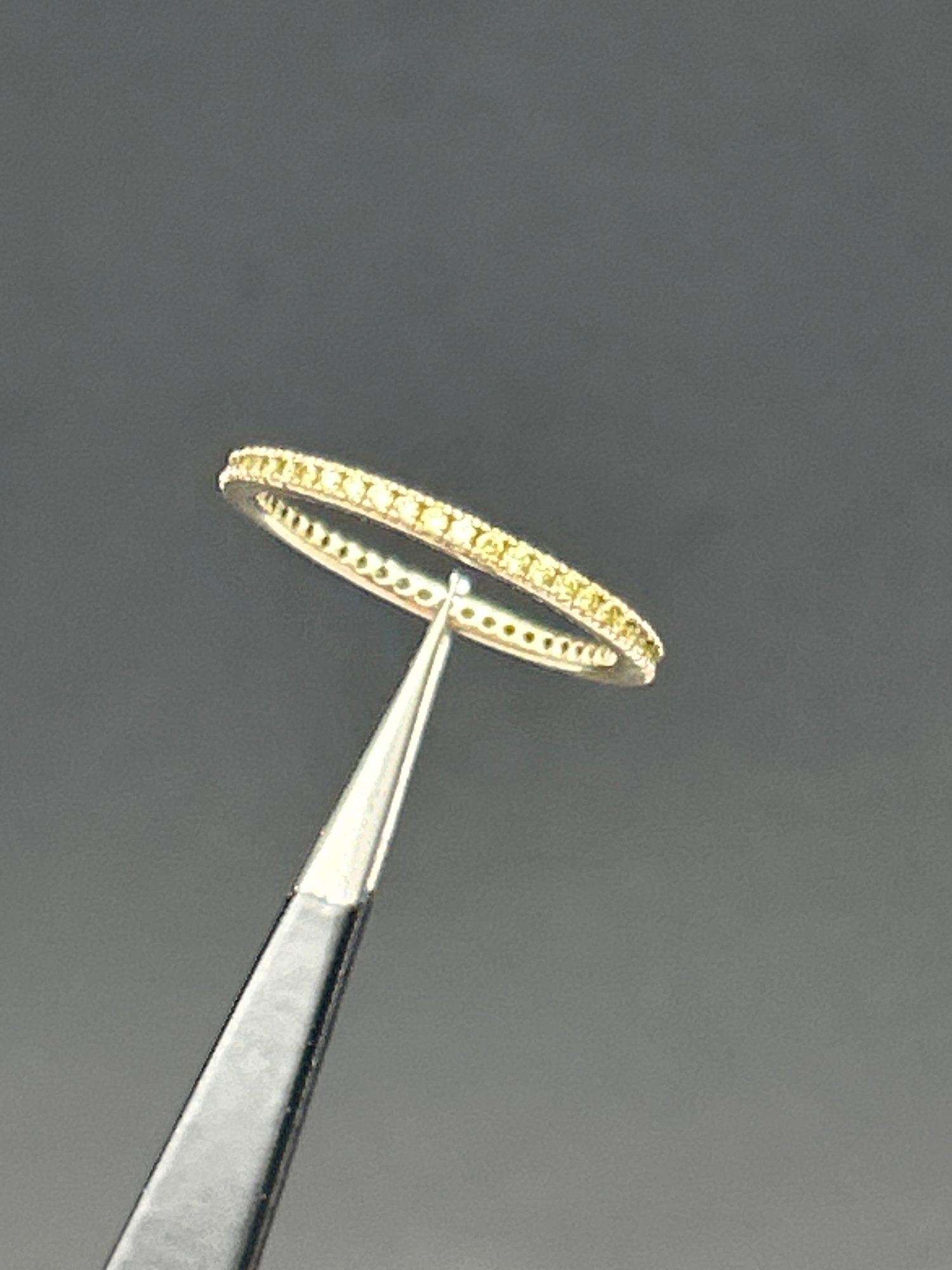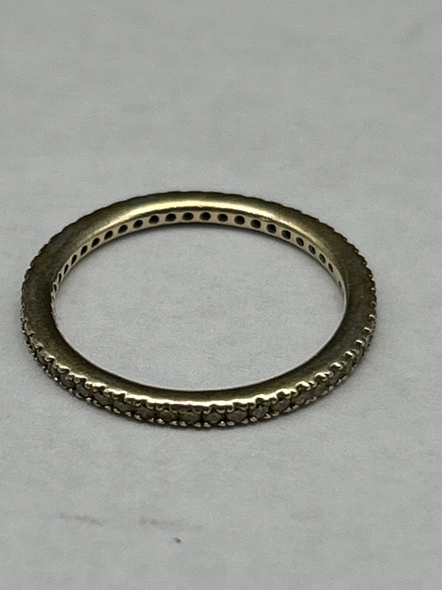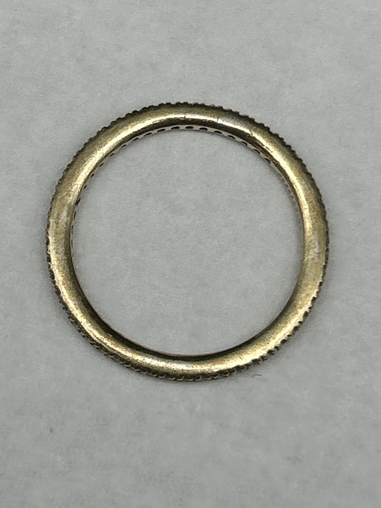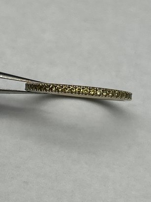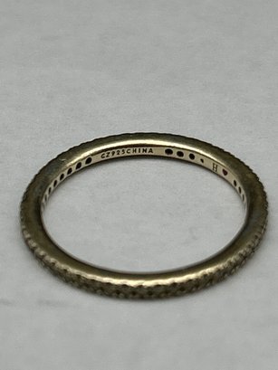 Dainty Olive Green CZ Eternity Band, Gold Washed Sterling Silver Stackable Band, Marked CZ 925, Size 7.25