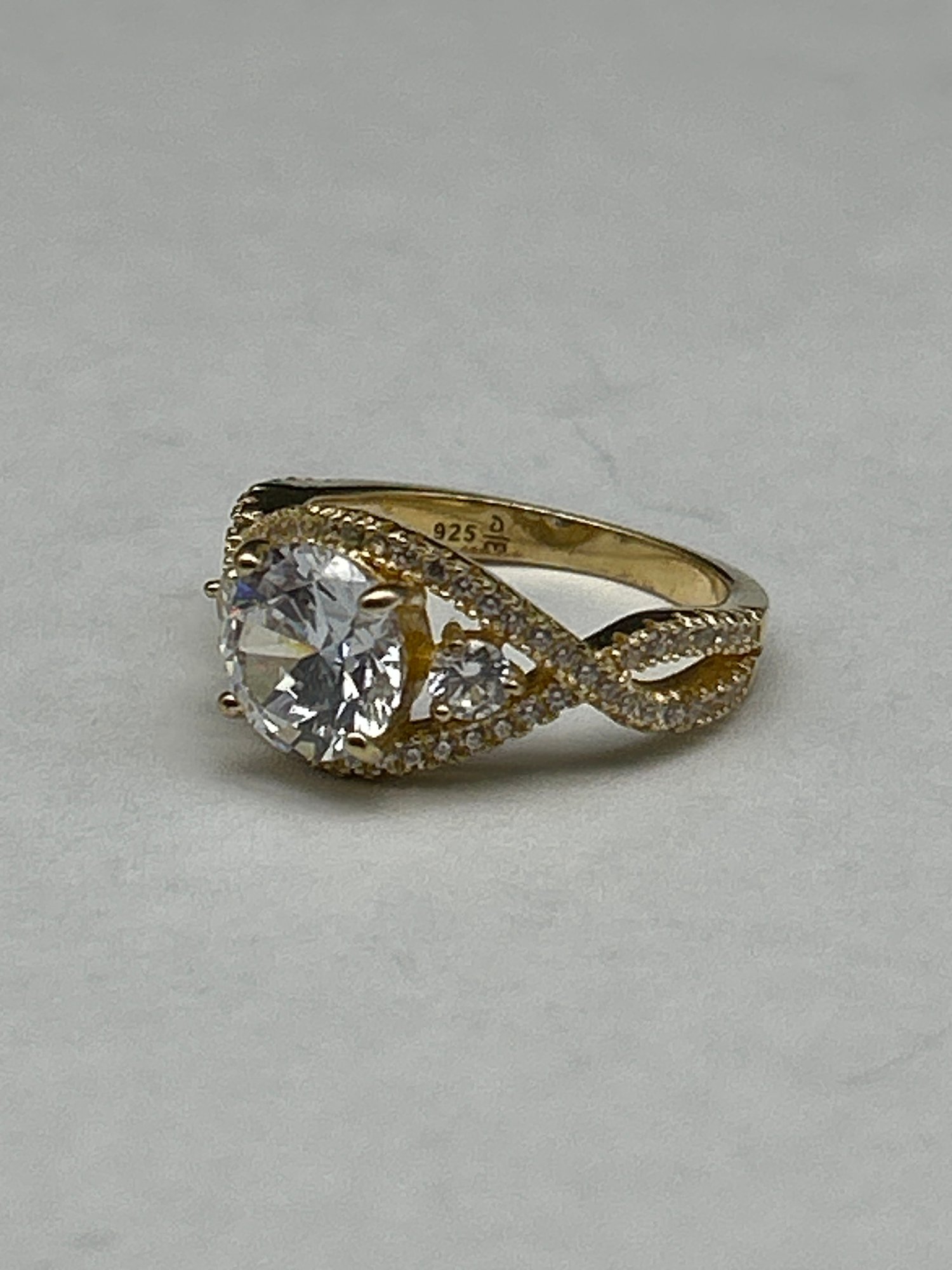 Danbury Mint Swirls Of Splendor 14K Gold Plated Sterling Silver Ring, Diamonisse Simulated Diamond, Size 6.25