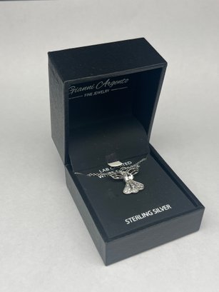 Dee Berkley Jewelry Sterling Silver Angel Pendant & Lab White Sapphires On Sterling Necklace, Marked DJB 925