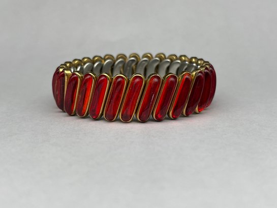 DFB (Briggs) Co. WWI "Carmen" Model Sweetheart Bracelet, Gold Toned Expandable Link, Red Glass Cabochons