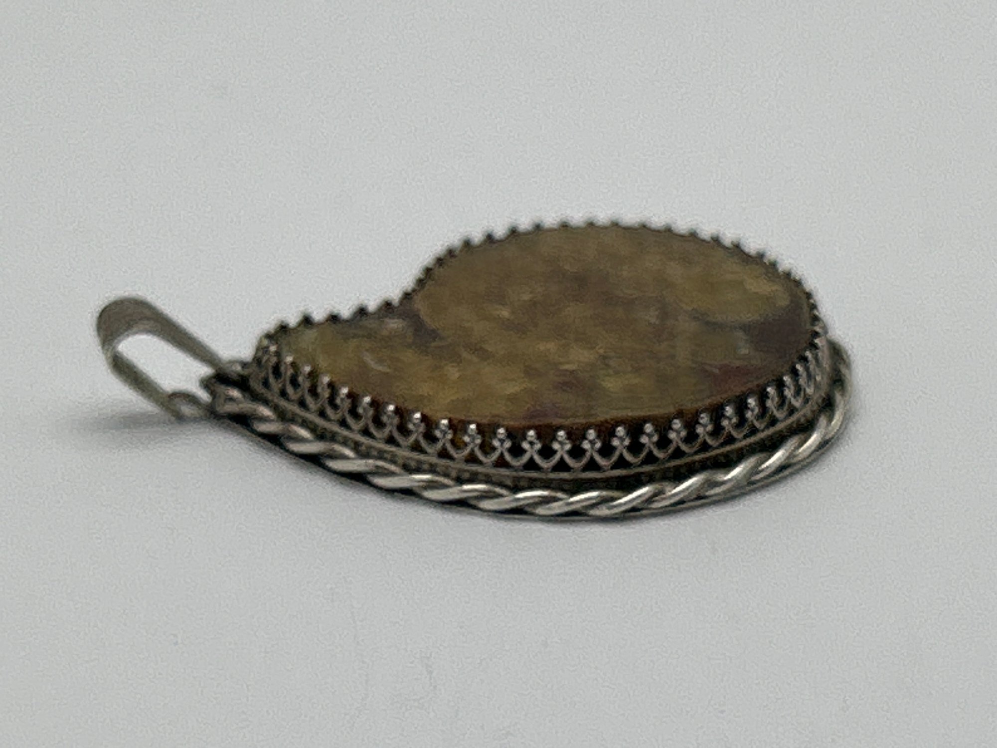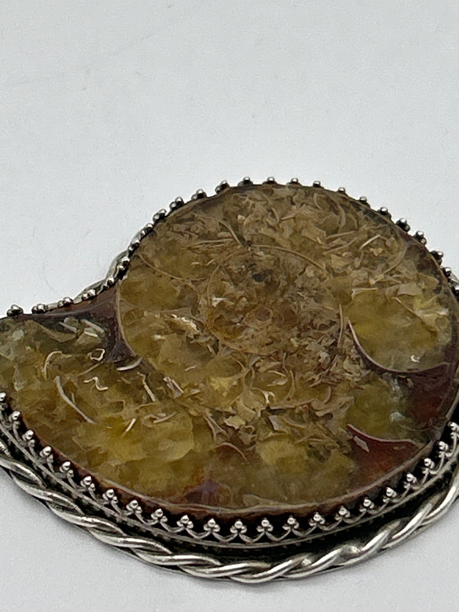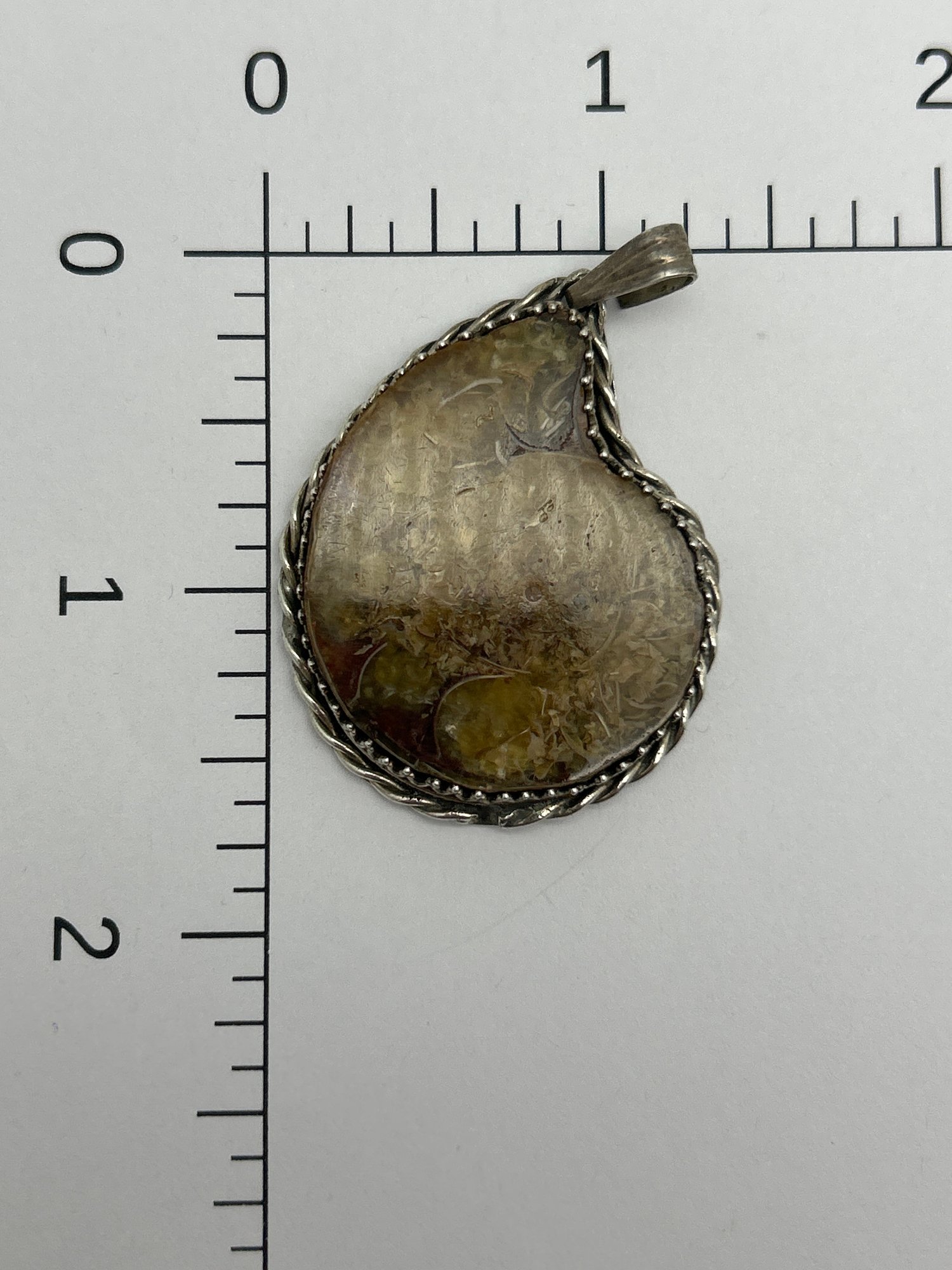 Fossil Pendant In Sterling Silver Setting, Ammonite, Teardrop Profile