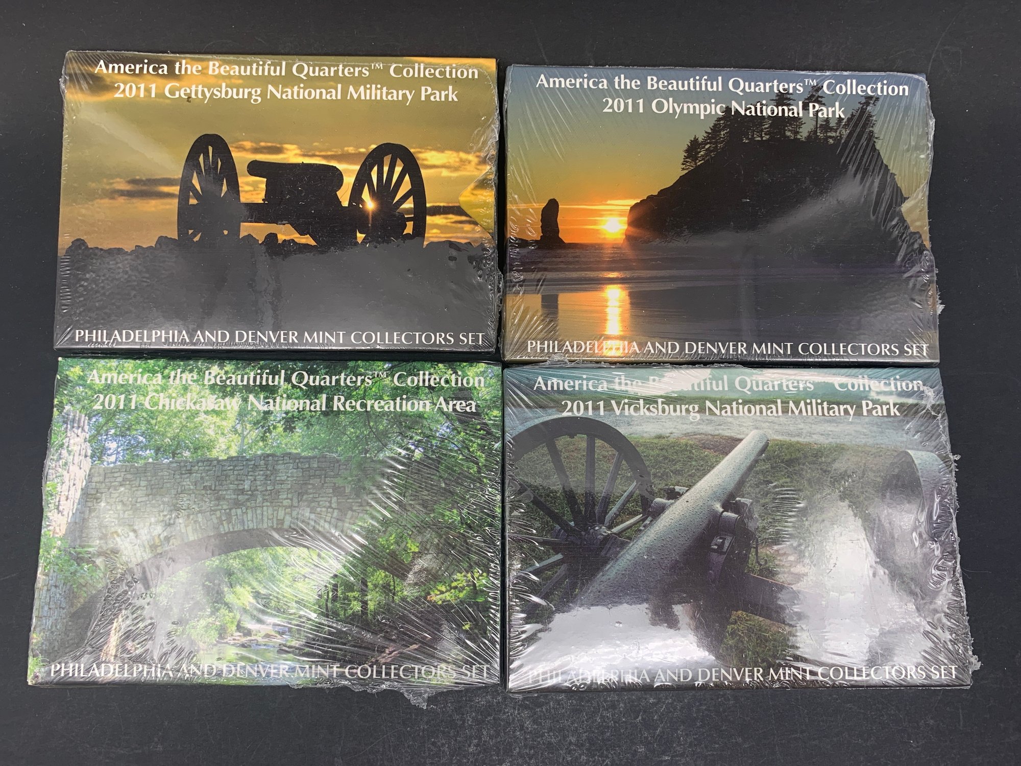 Four 2011 America The Beautiful Quarters Collections, Philadelphia & Denver Mint, Factory Sealed