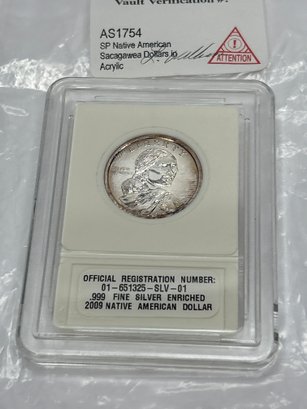 Four (4) .999 Fine Silver Enriched 2009 Sacajawea Native American Dollars In Acrylic Cases