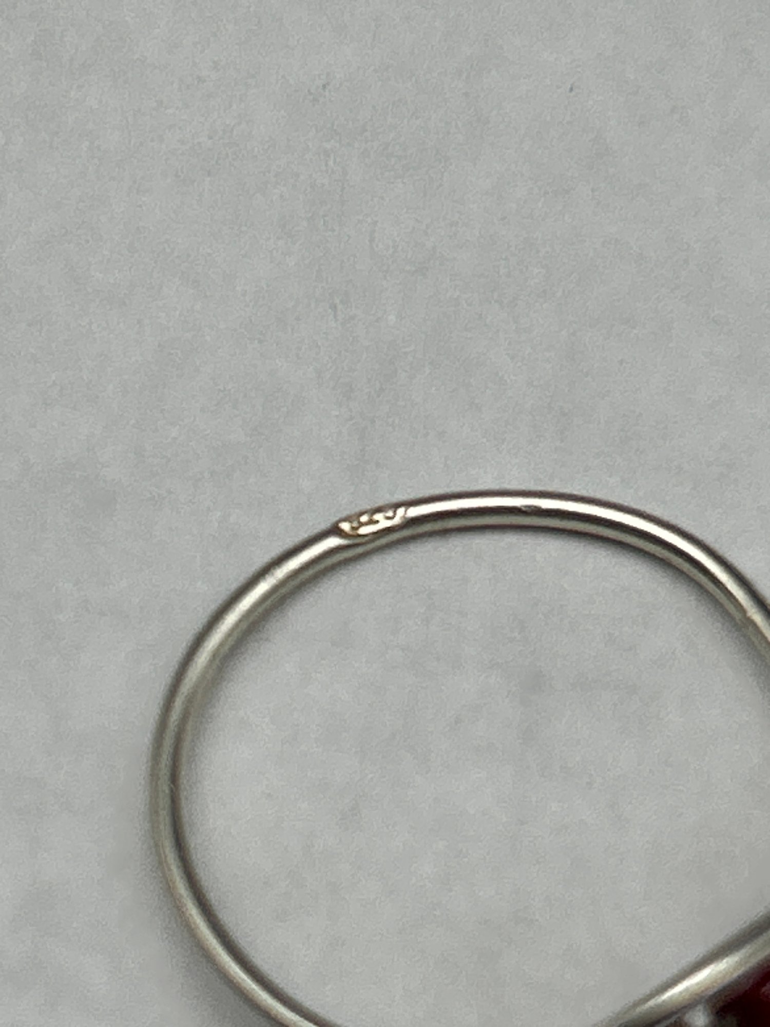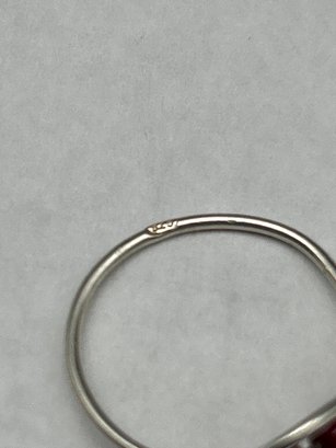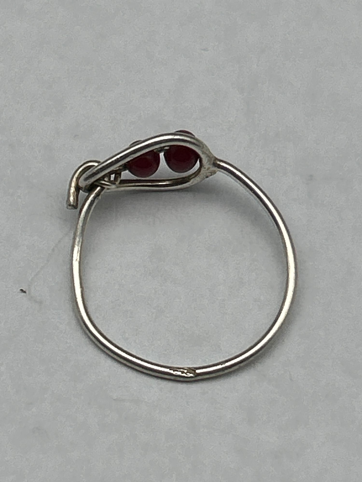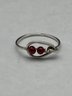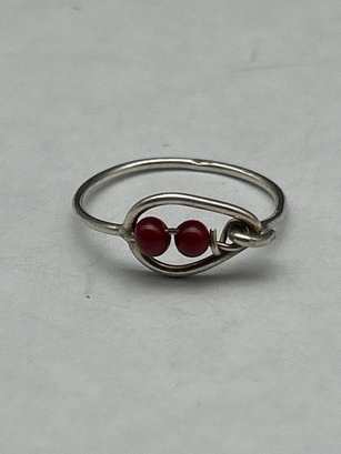 Hand Made Wire Wrapped Sterling Silver Ring With Two Red Beads, Marked 925, Size 6.5