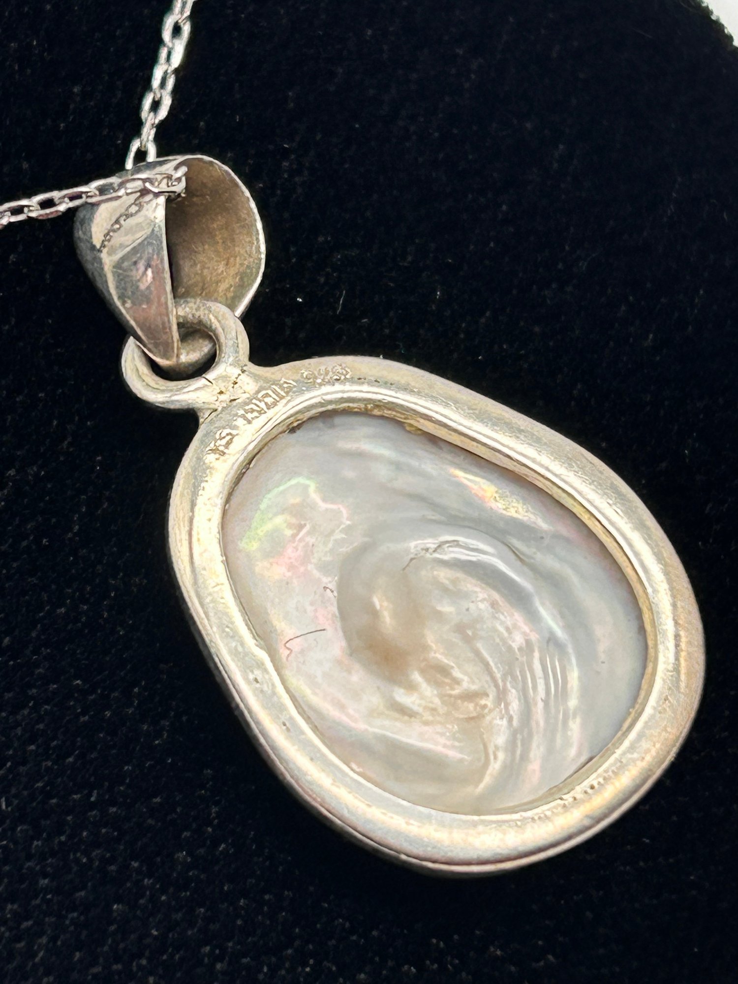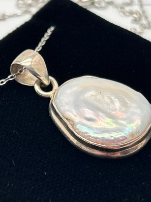 Large Sterling Silver Baroque Pearl Pendant, India, W/ 18-20 Inch Adjustable Chain