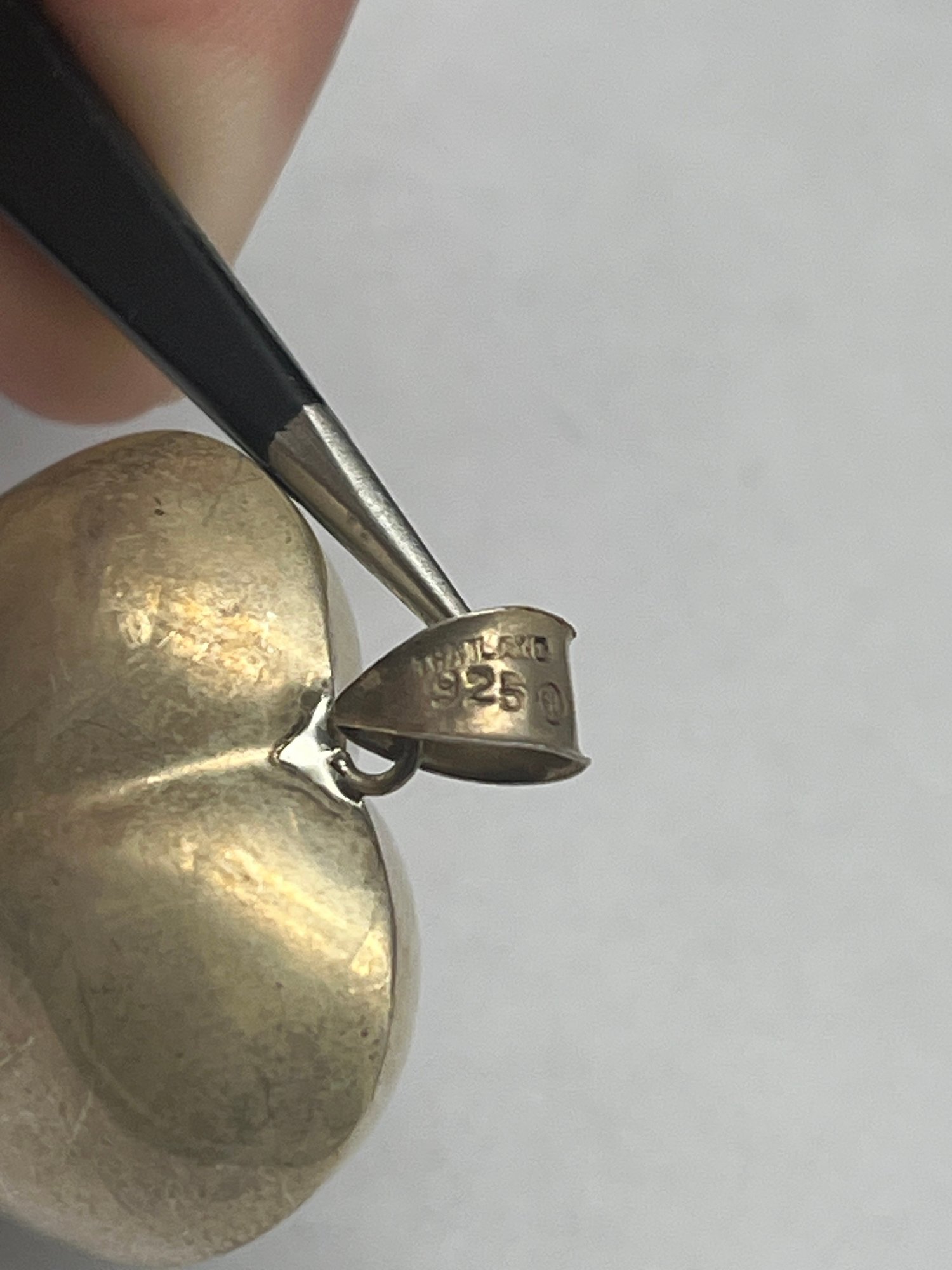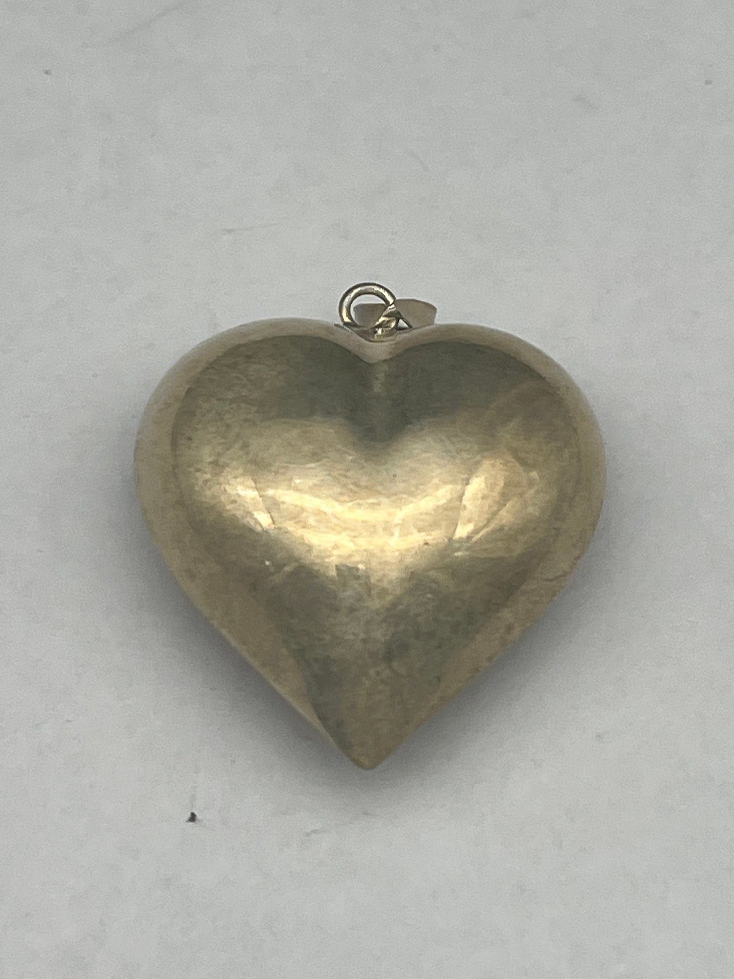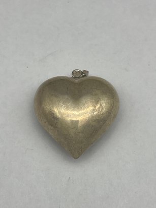 Large Sterling Silver Puffy Heart Charm, 3D, Marked 925, 1.25"