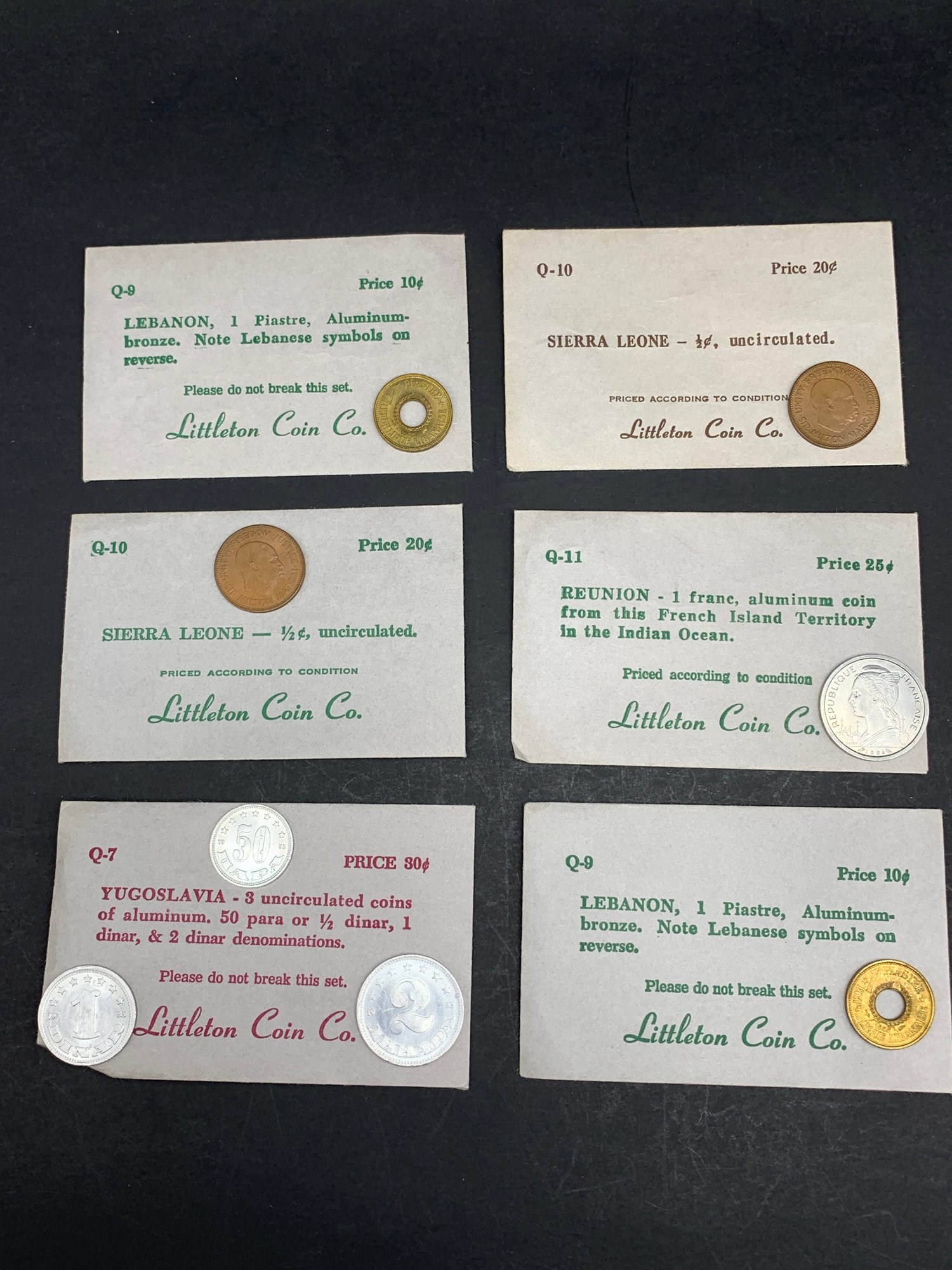 Littleton Coin Co. Foreign Coin Collection, Uncirculated, Enveloped Set, Yugoslavia, Lebanon, Sierra Leone