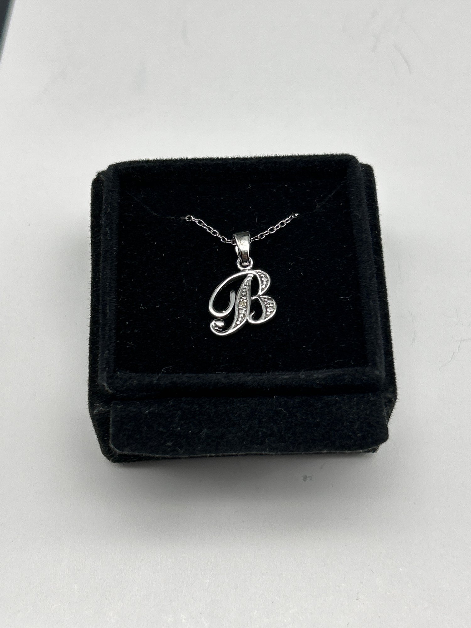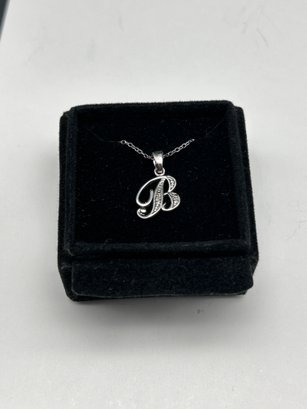 Monogram Sterling Silver Letter "B" Pendant, 1/2-inch, On 18" Sterling Chain, Both Marked 925