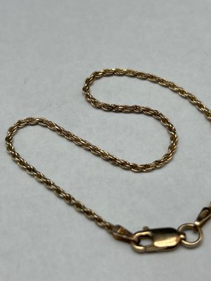 Gold Toned Sterling Silver Rope Link Bracelet With Lobster Claw Clasp, Marked 925, ITALY, 7"