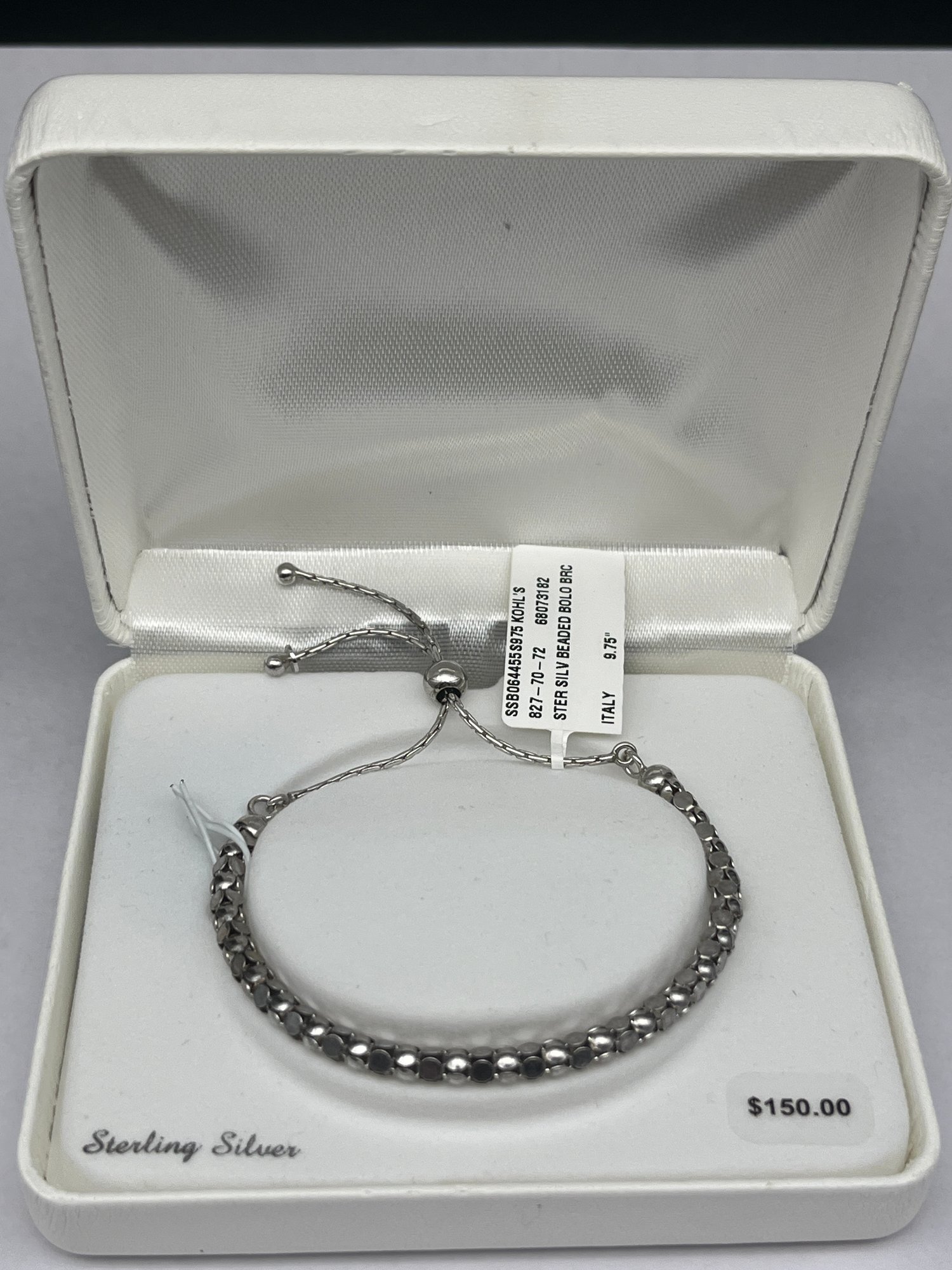 Popcorn Link Sterling Silver Adjustable Length Bracelet / Anklet, New In Box With Tag, 9.75"