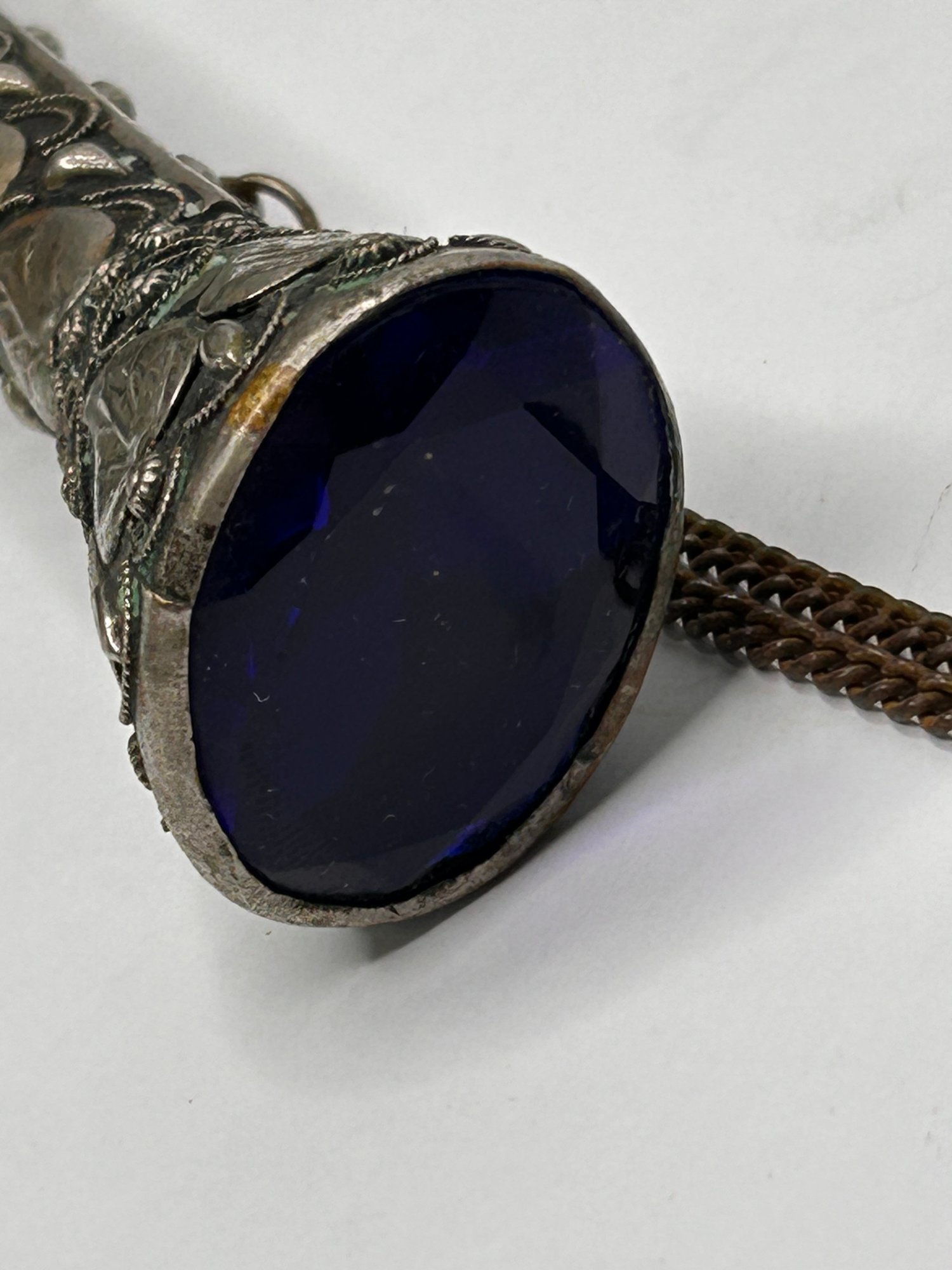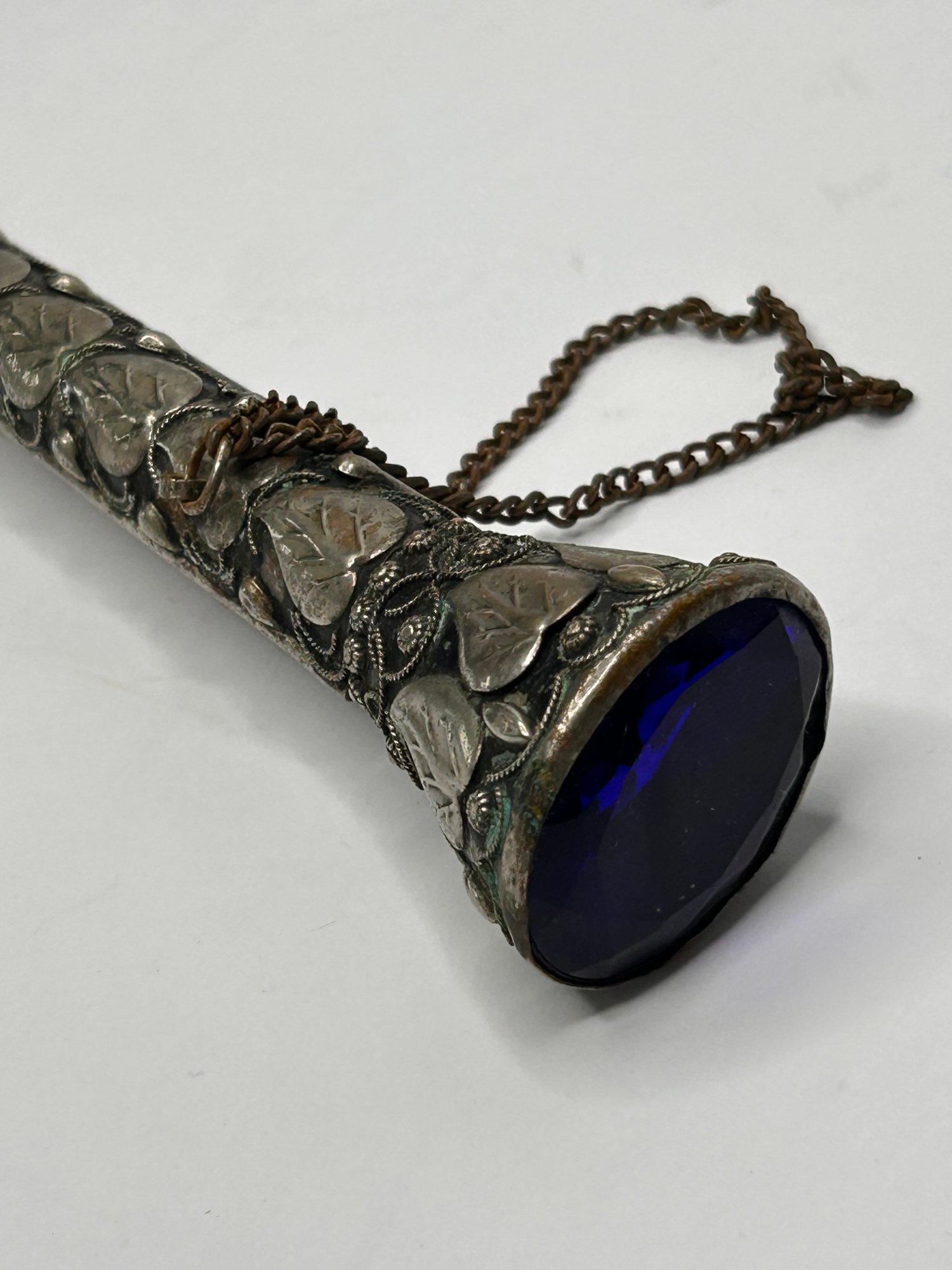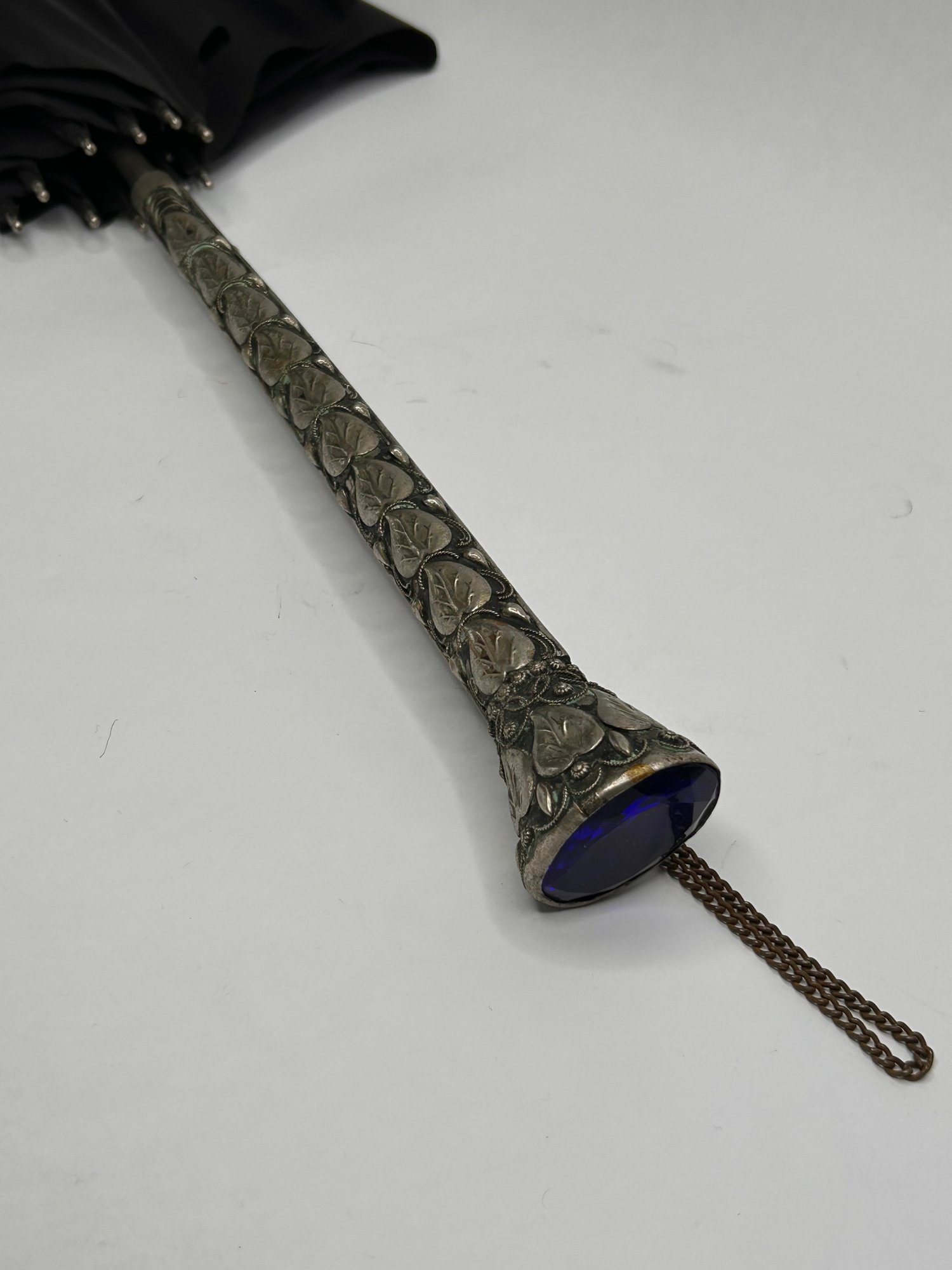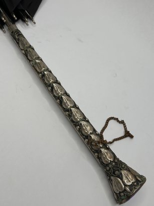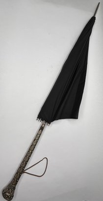 Ornate Silver Toned Handle Umbrella With Large Blue Jeweled Stone In Handle, Firenze, Made In Italy 33 Inch