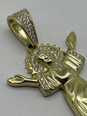 Great Sterling Silver Gold Plated CZ Jesus Christ Pendant