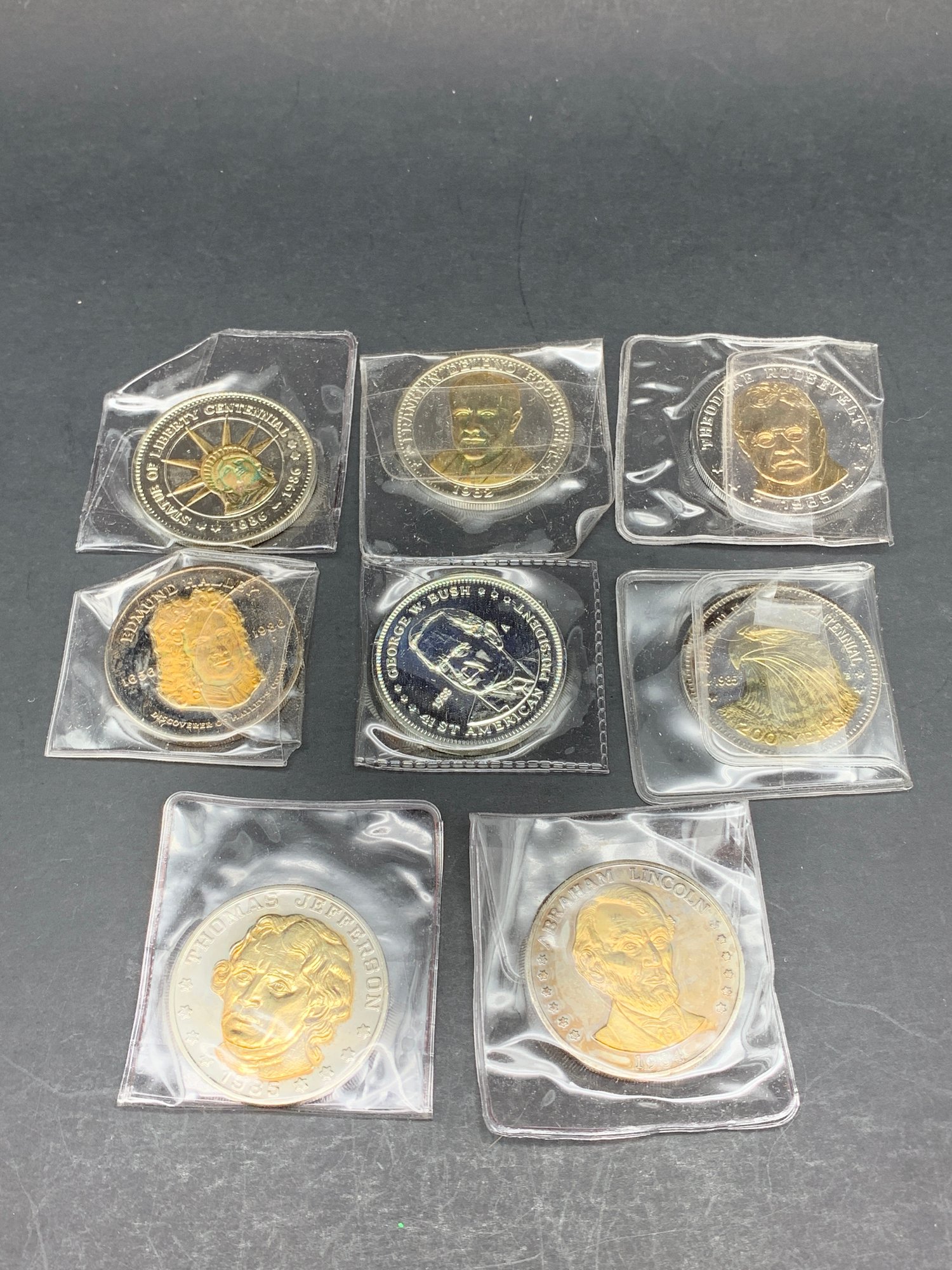Presidential Anniversary And Patriotic Two-Toned Coin Collection, Commemorative Rounds