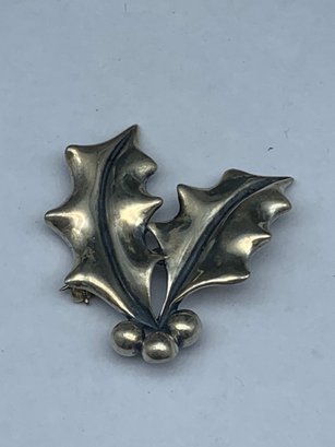Retired James AVERY Holly & Berries Sterling Silver Brooch Pin Signed, 1.75"
