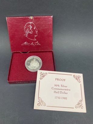 Proof 90% Silver Commemorative Half Dollar, .900 Silver, 250th Anniversary Of George Washington's Birth