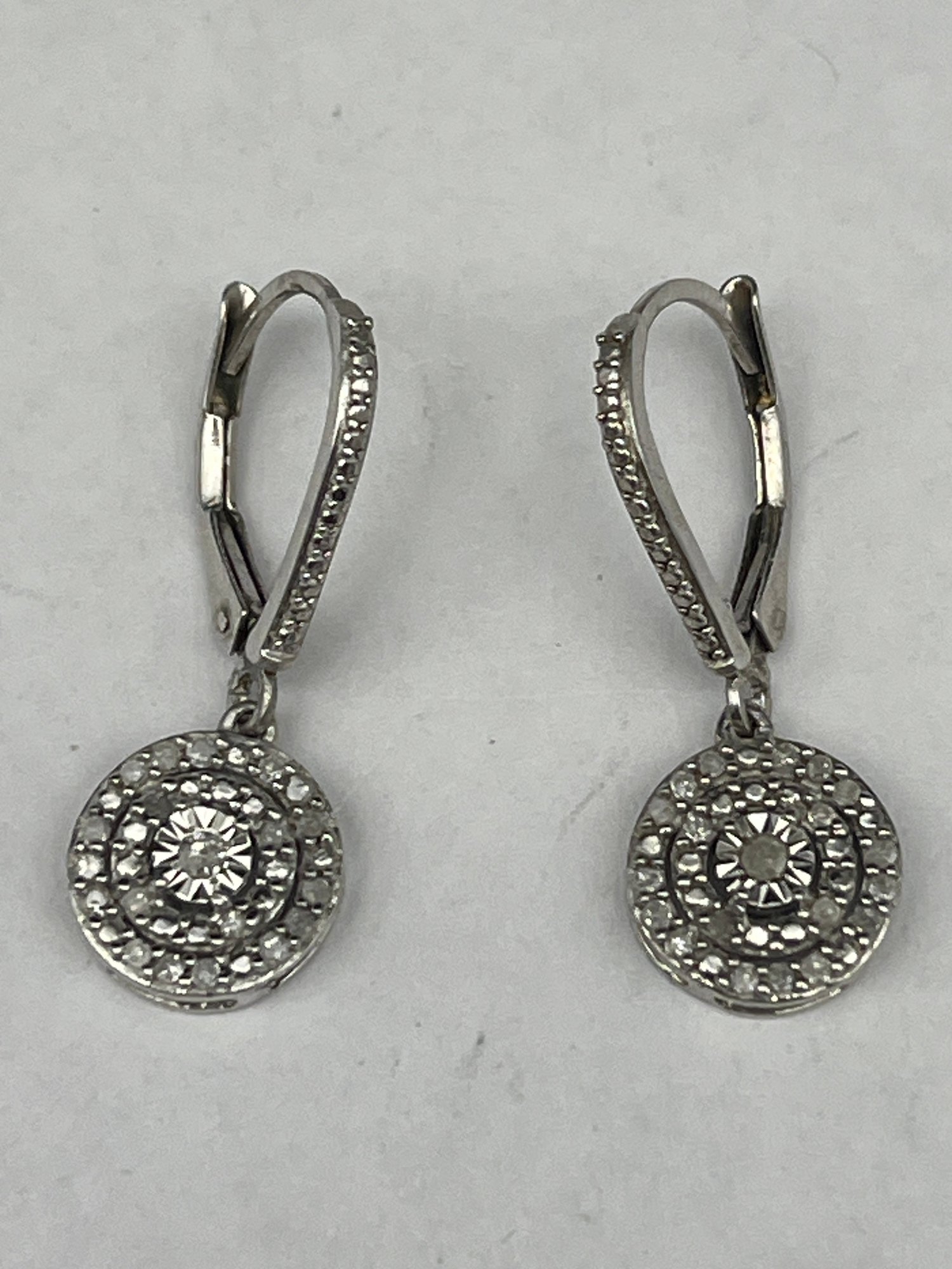 Round Diamond Halo Drop Dangle Leverback Sterling Silver Earrings, Made In INDIA, 925, 1"