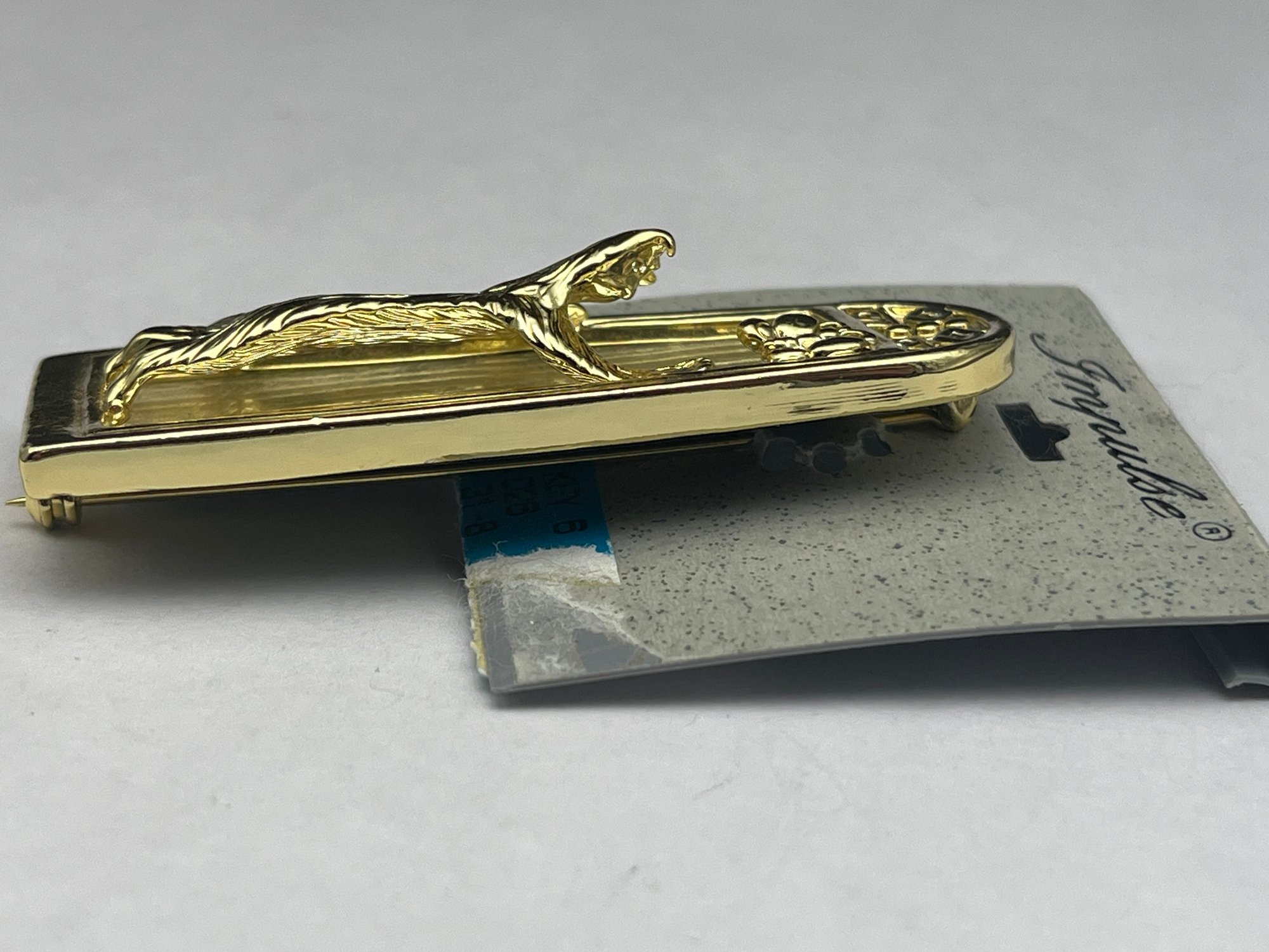 Signed AJC Brooch, Cat Reaching For Butterfly With Mirror Reflection, Gold Toned, 2.5"