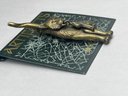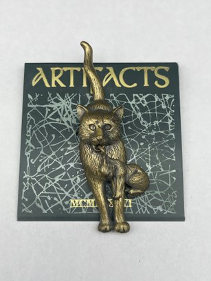 Signed JJ Jonette Vintage Antiqued-Gold Toned Cat Carrying Kitten Brooch, 3"