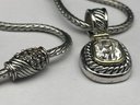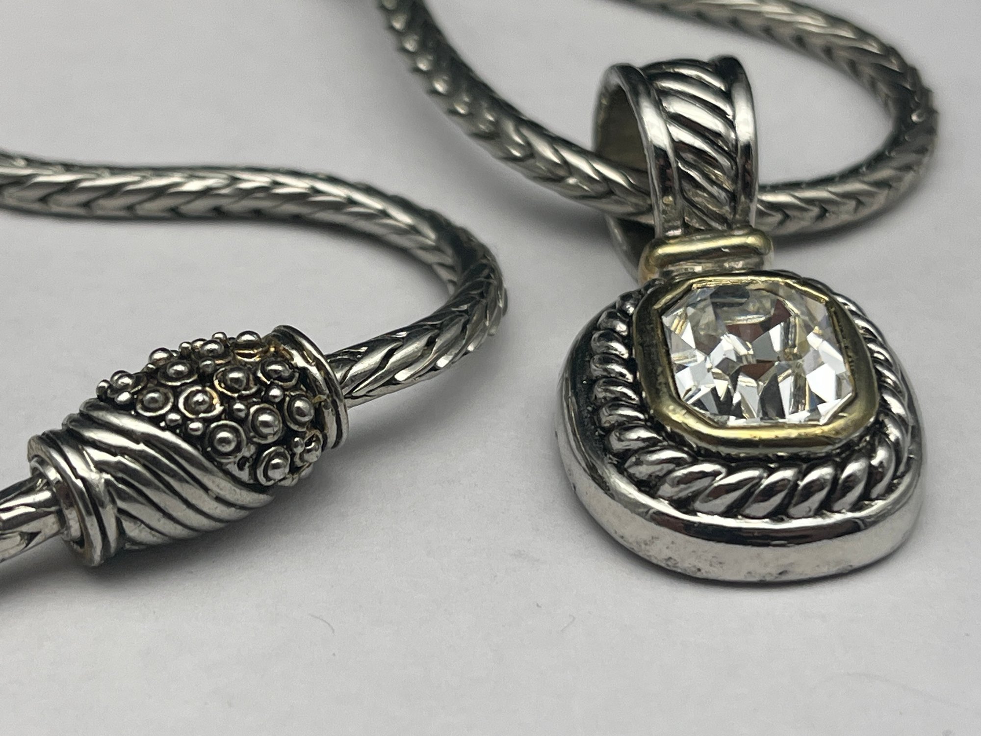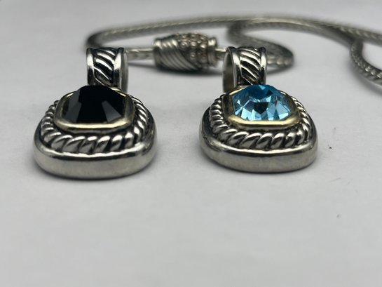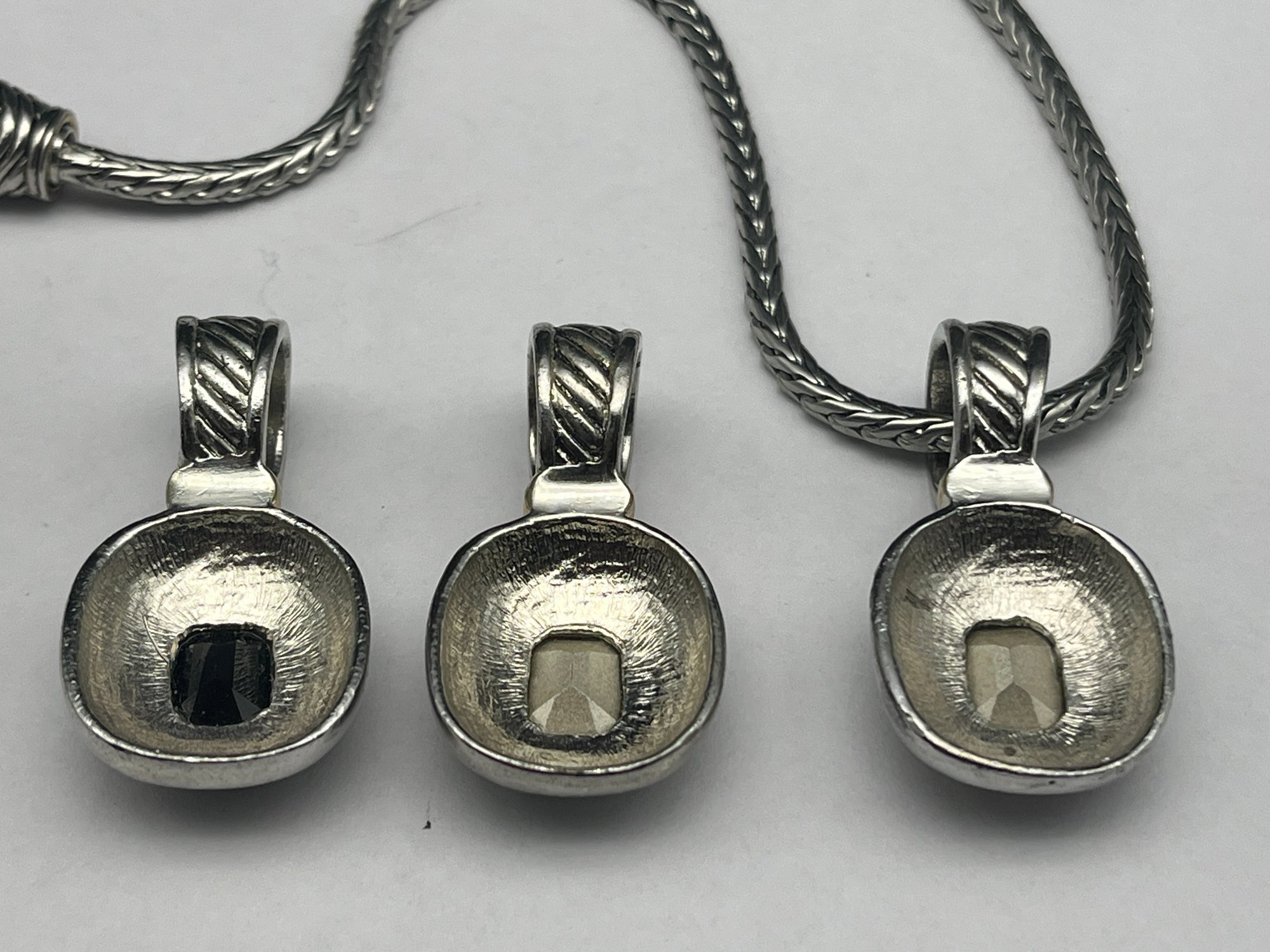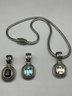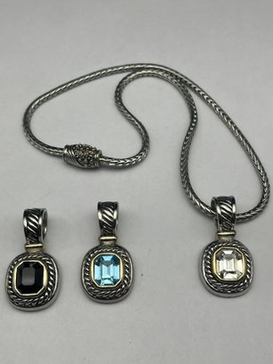 Silver Wheat Link 17" Necklace With Magnetic Clasp & Three Interchangeable Slider Pendants With Stones