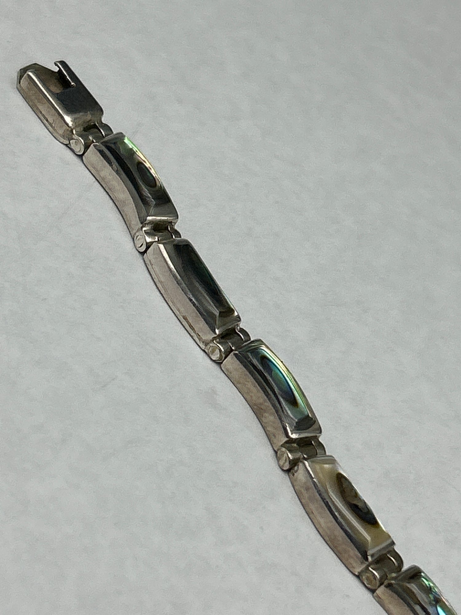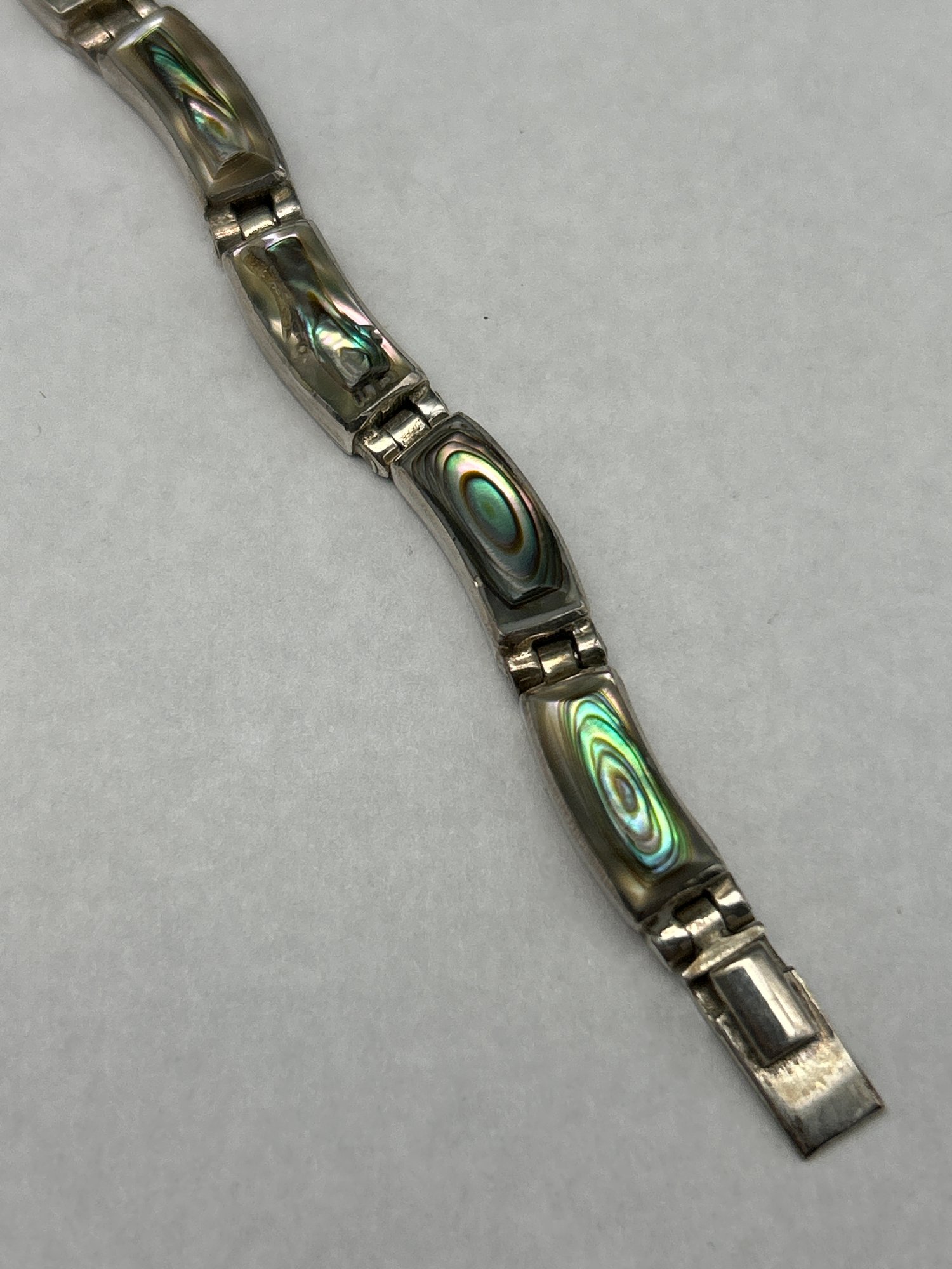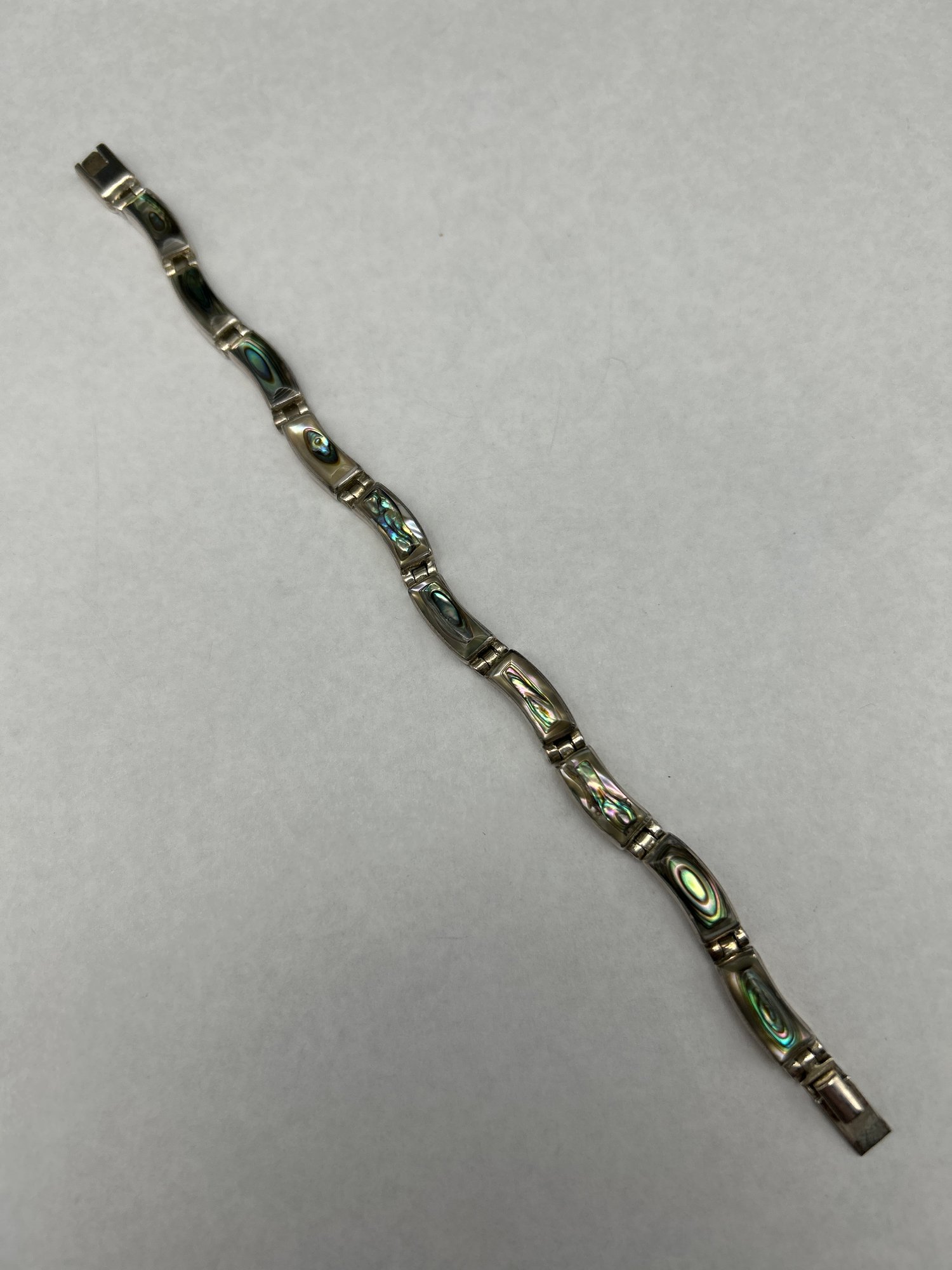 Sterling And Abalone Wavy Link Bracelet, 950 Silver, 7.5 Inch Length, Box Clasp