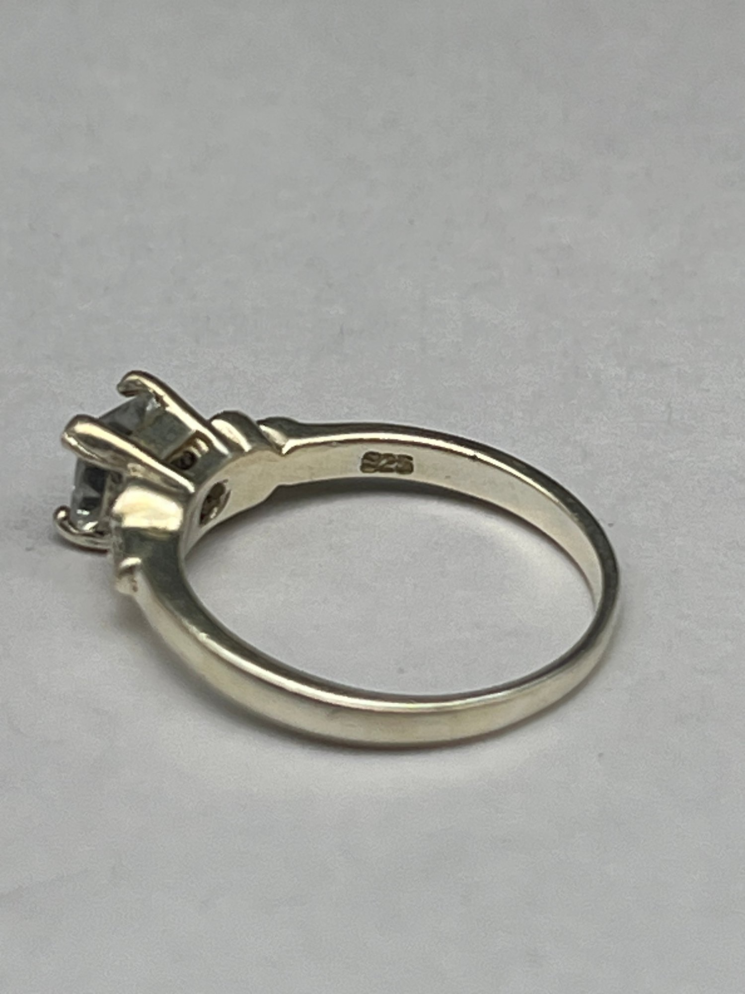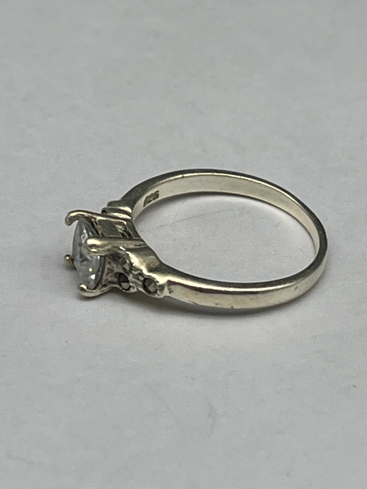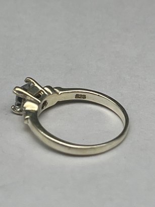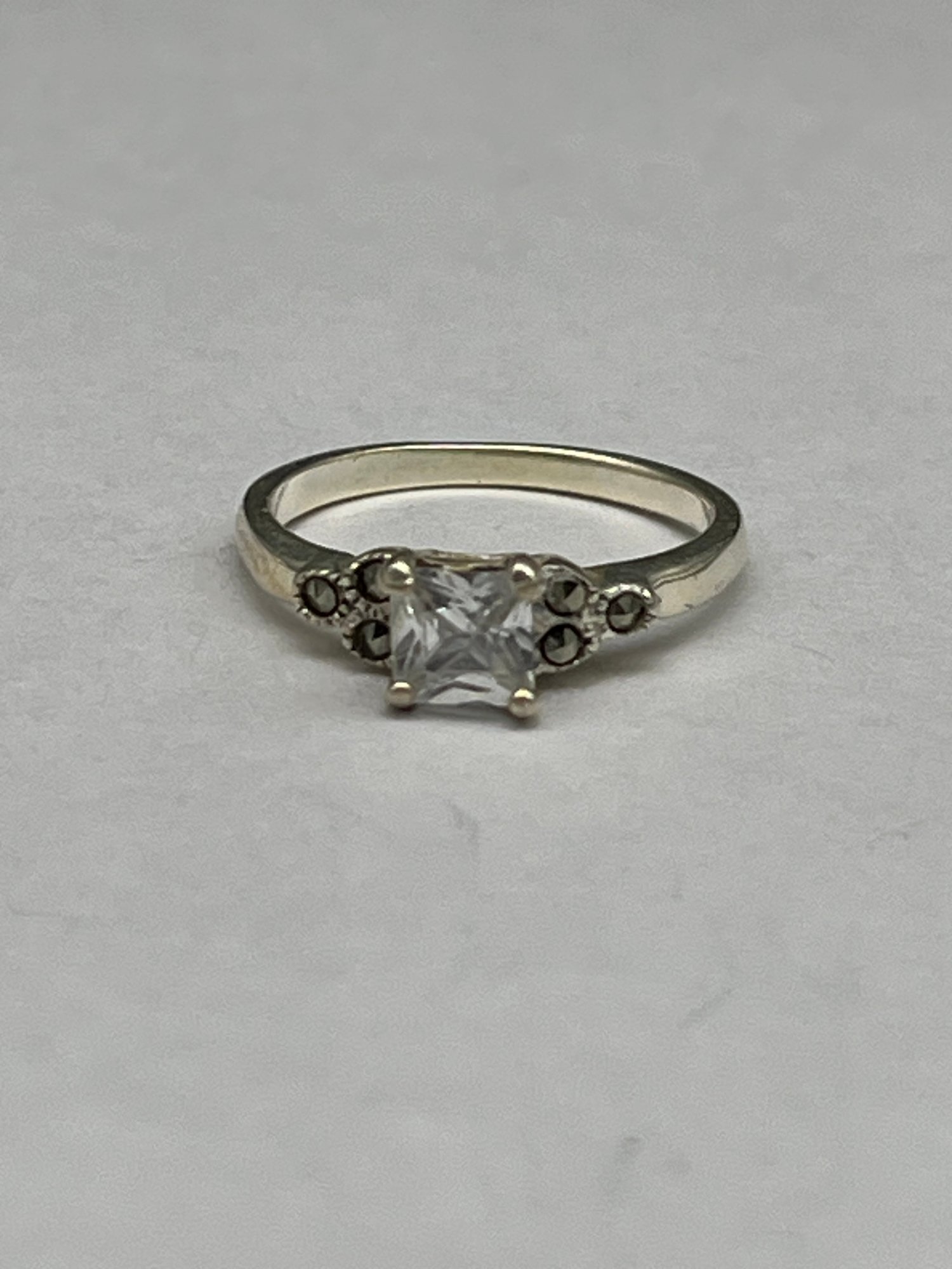 Sterling Ring With Princess Cut Clear Stone With Marcasite Side Stones, Marked 925, Size 6