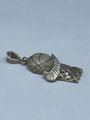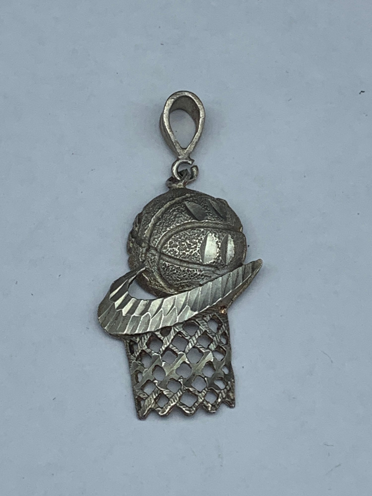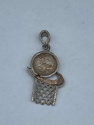 Sterling Silver 925 Large Basketball And Hoop Pendant With Nike Swoosh, 1.5"