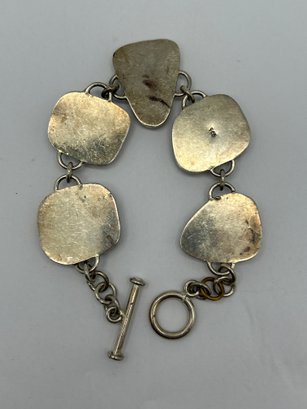 Sterling Silver Colorful Art Glass Toggle Clasp Bracelet, 8 Inch