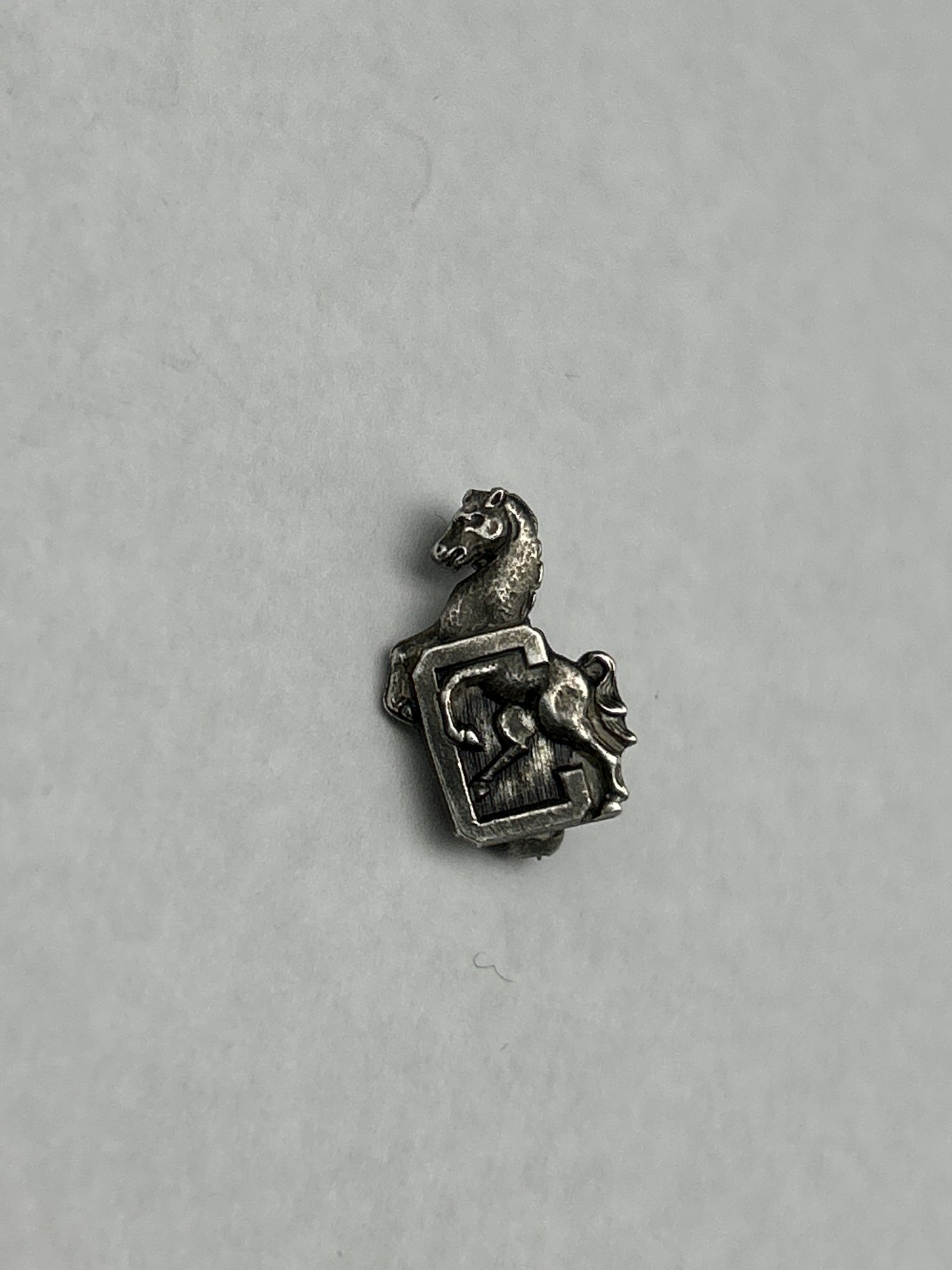 Sterling Silver Lapel Pin, Rearing Horse / Stallion, With Letter C, Marked Sterling, 5/8"