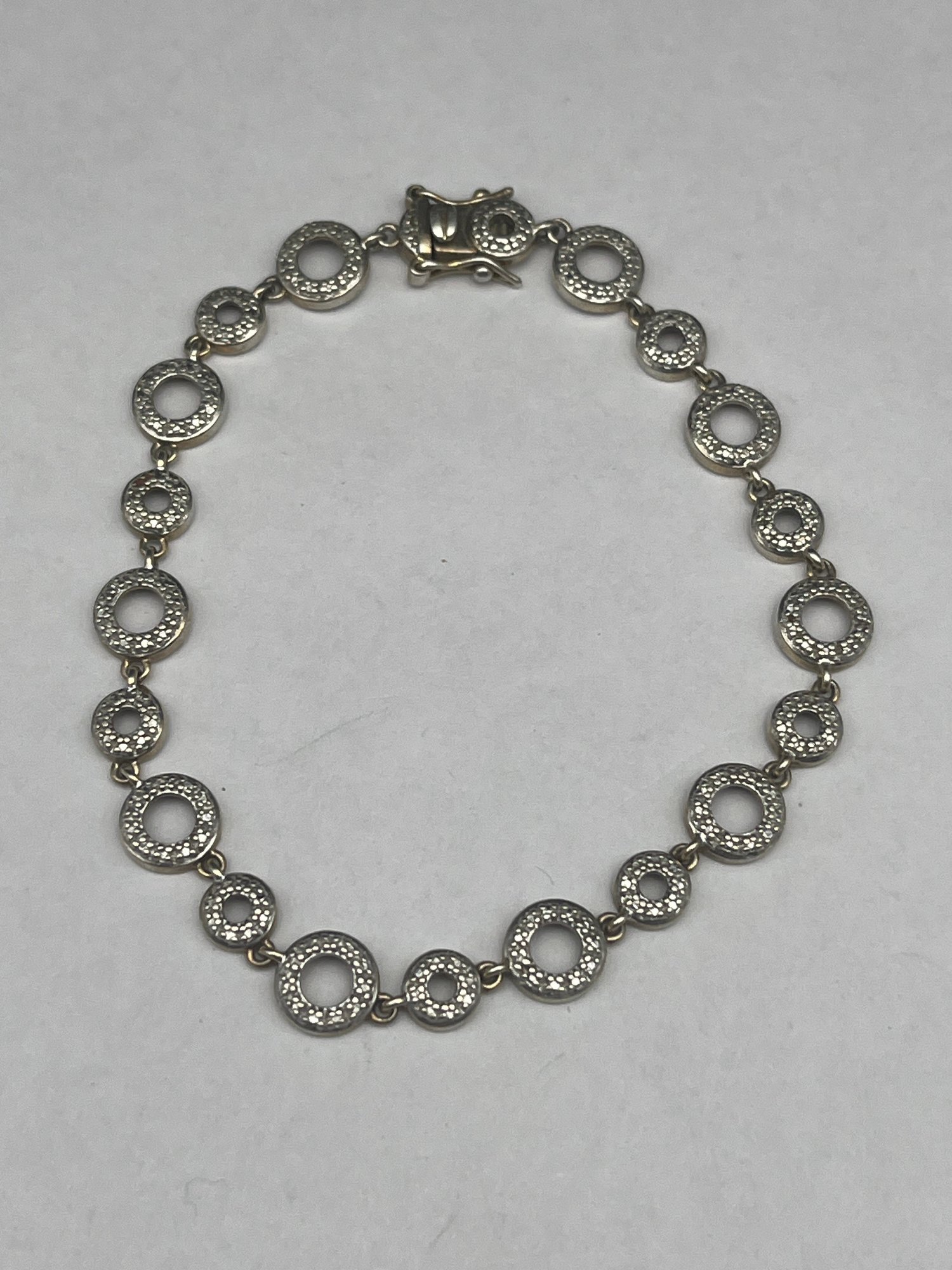 Sterling Silver Prime Art & Jewel Circle Link Bracelet, Marked 925, 8"