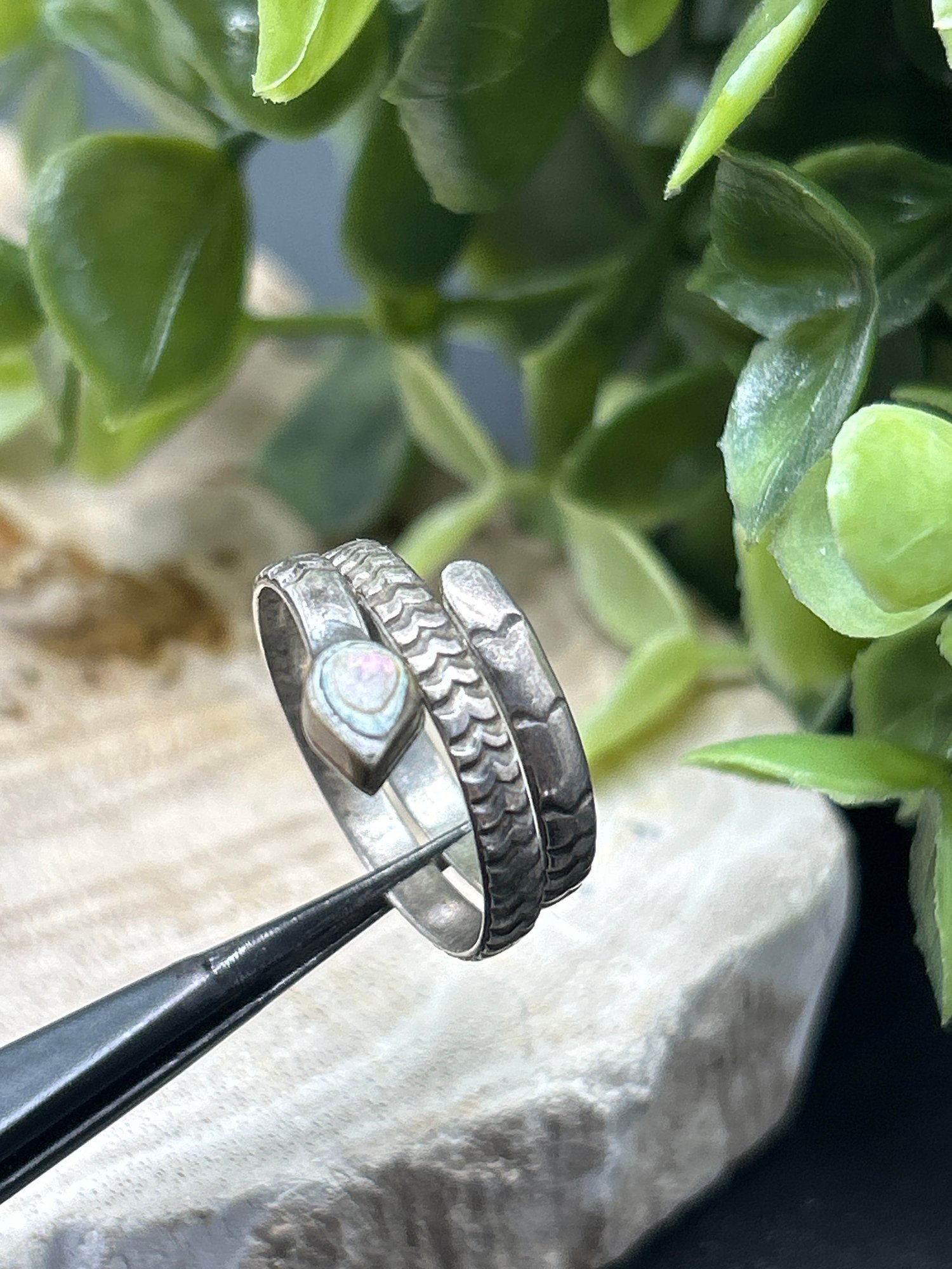 Sterling Silver Snake Wrap Ring, Marked 925 Mexico, Abalone Head, Band Sz 7