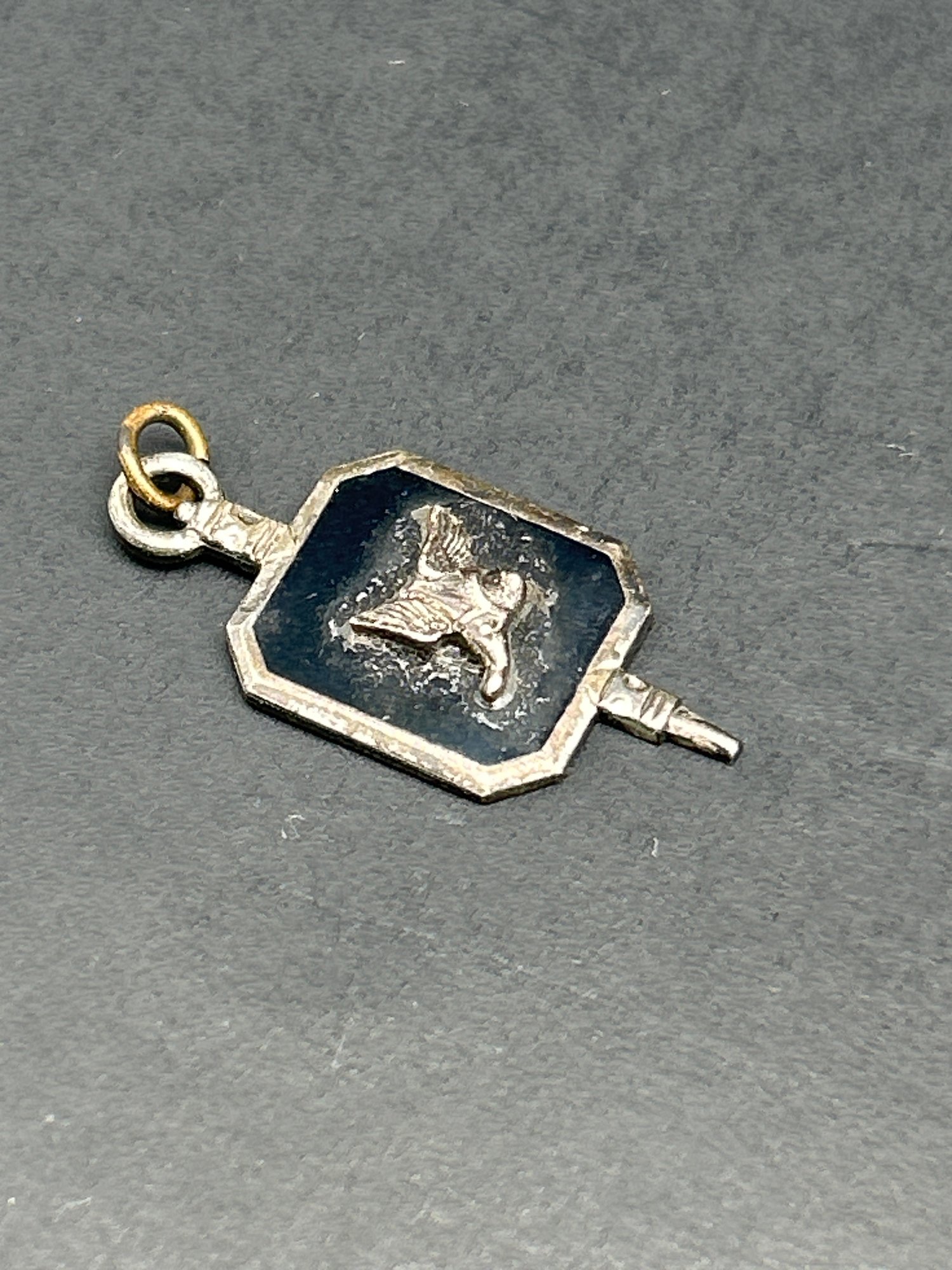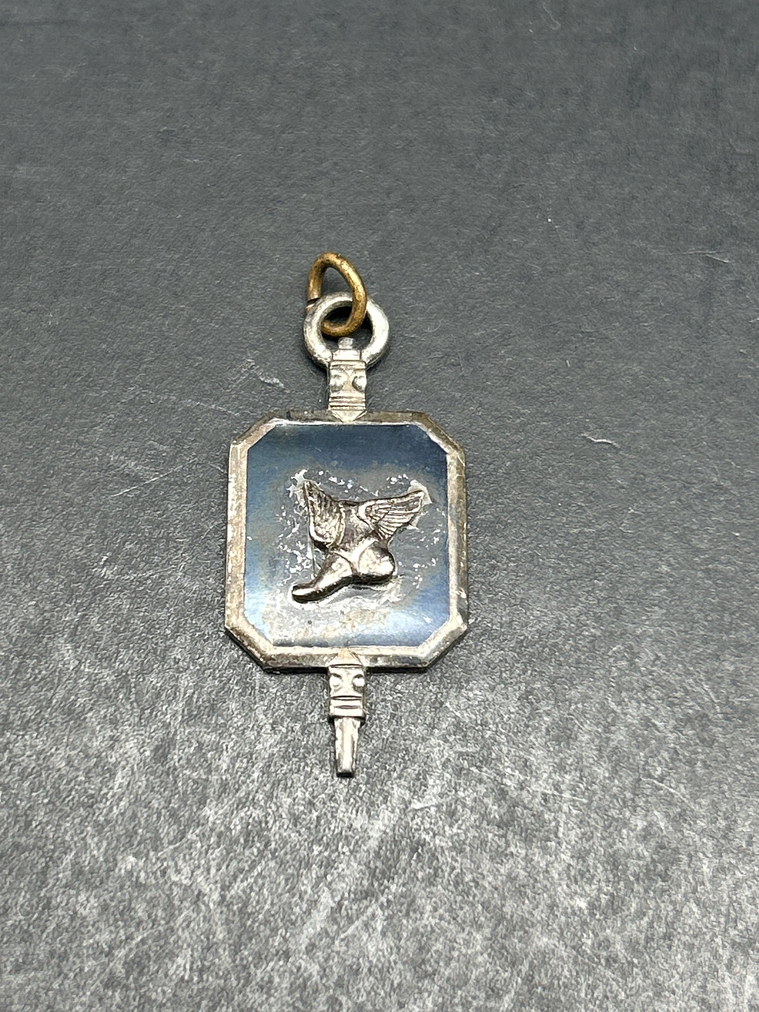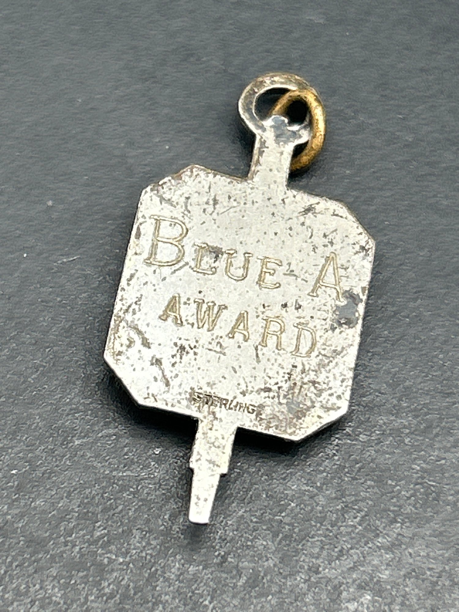 Sterling Silver Winged Foot Blue A Athletic Award Pendant, Athletic Symbol, Achievement Award, 1.25"