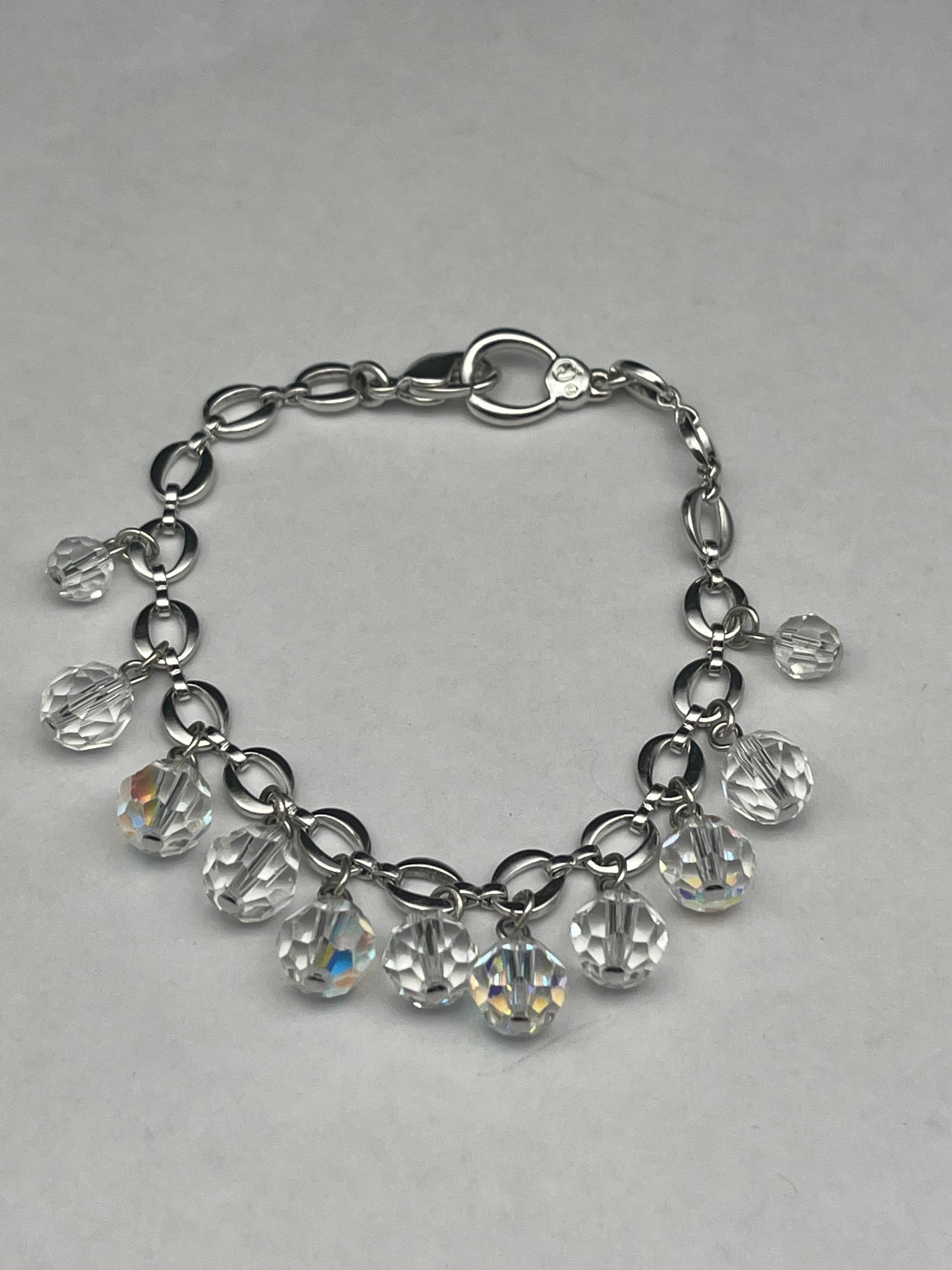 SWAROVSKI AB Crystal Dangling Bead Silver Toned Bracelet, 7"