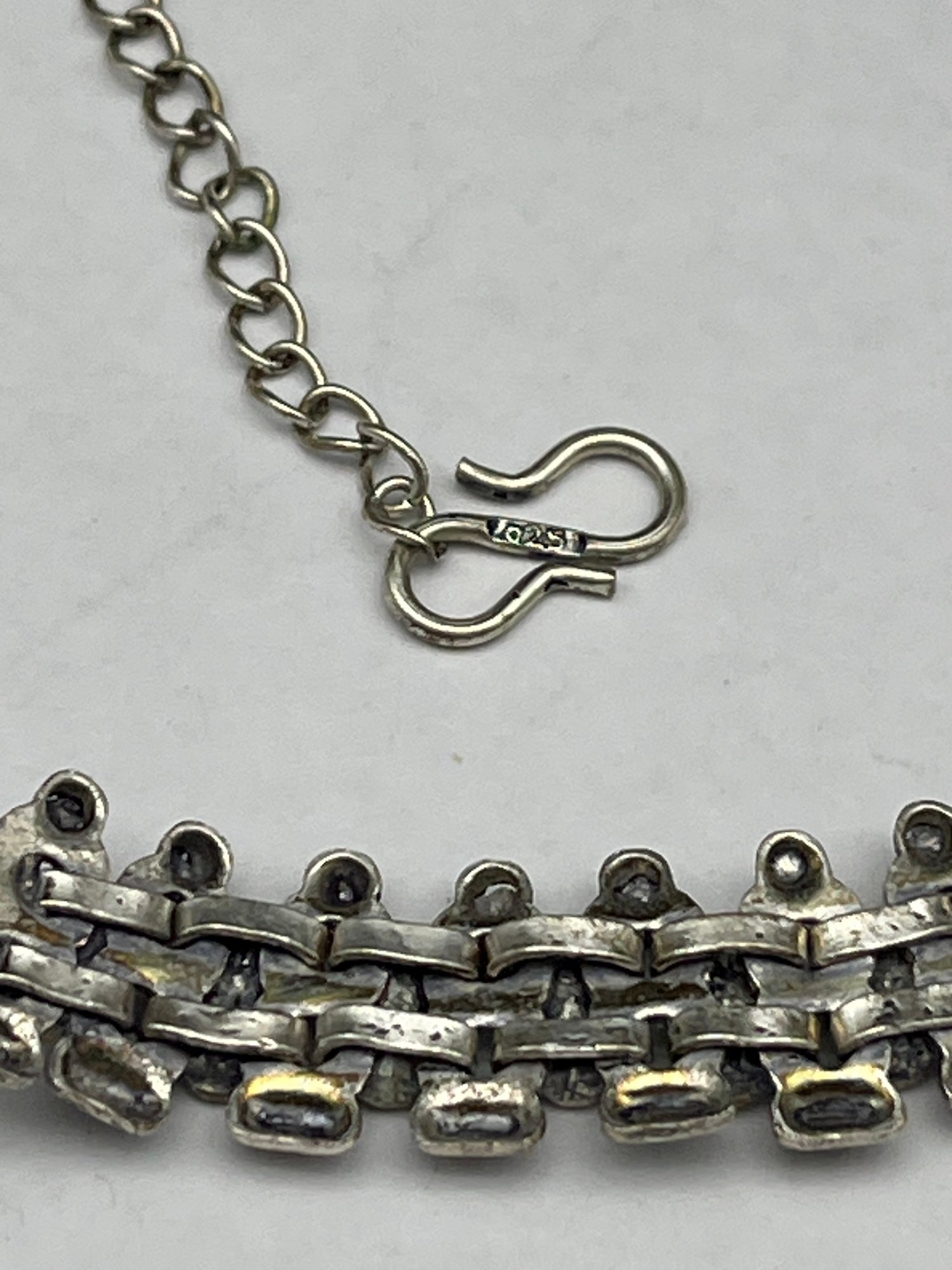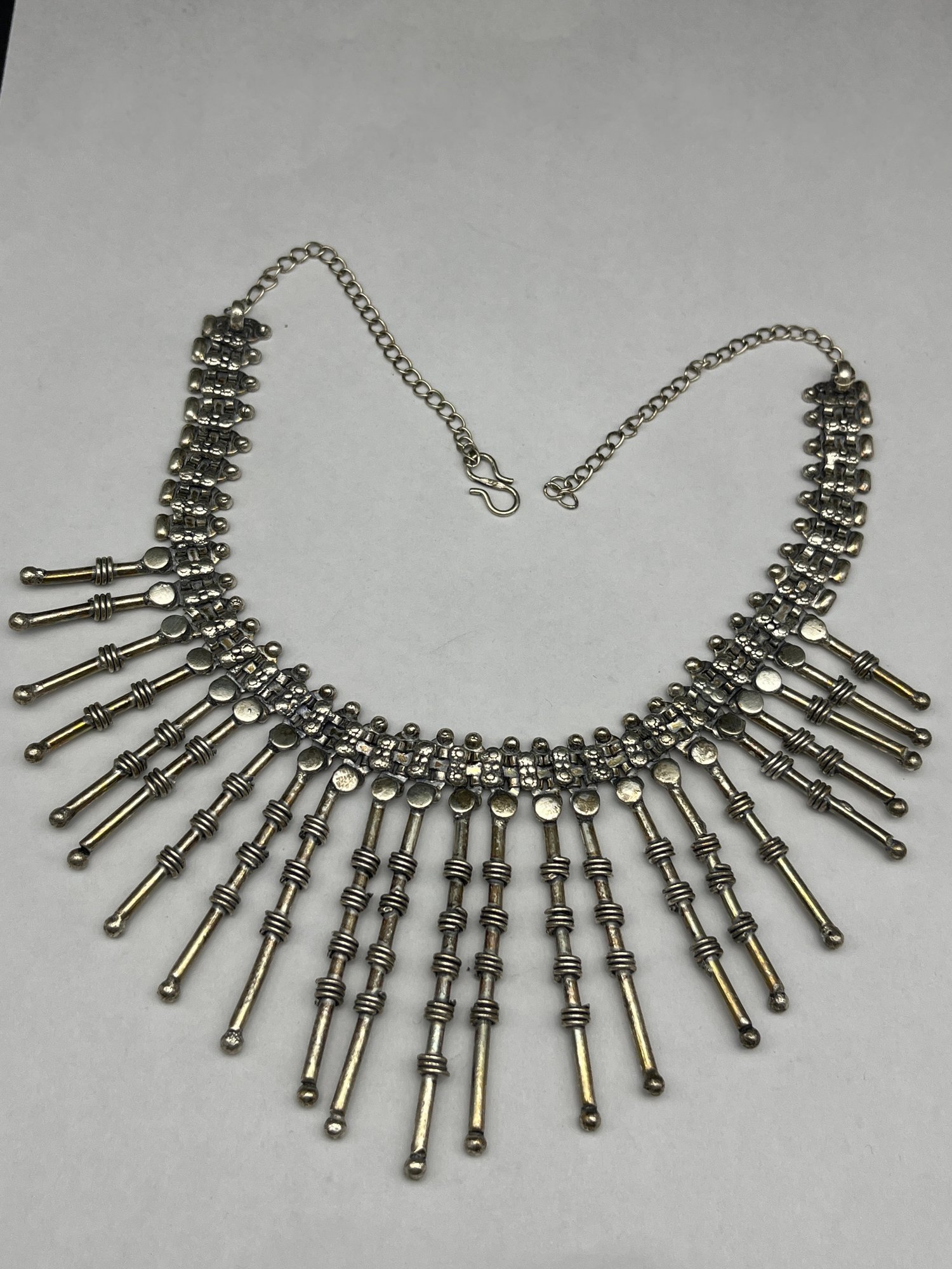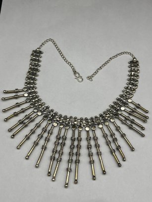 Tribal Style Silver Toned Bib Necklace, S-Hook Clasp, 18" Length